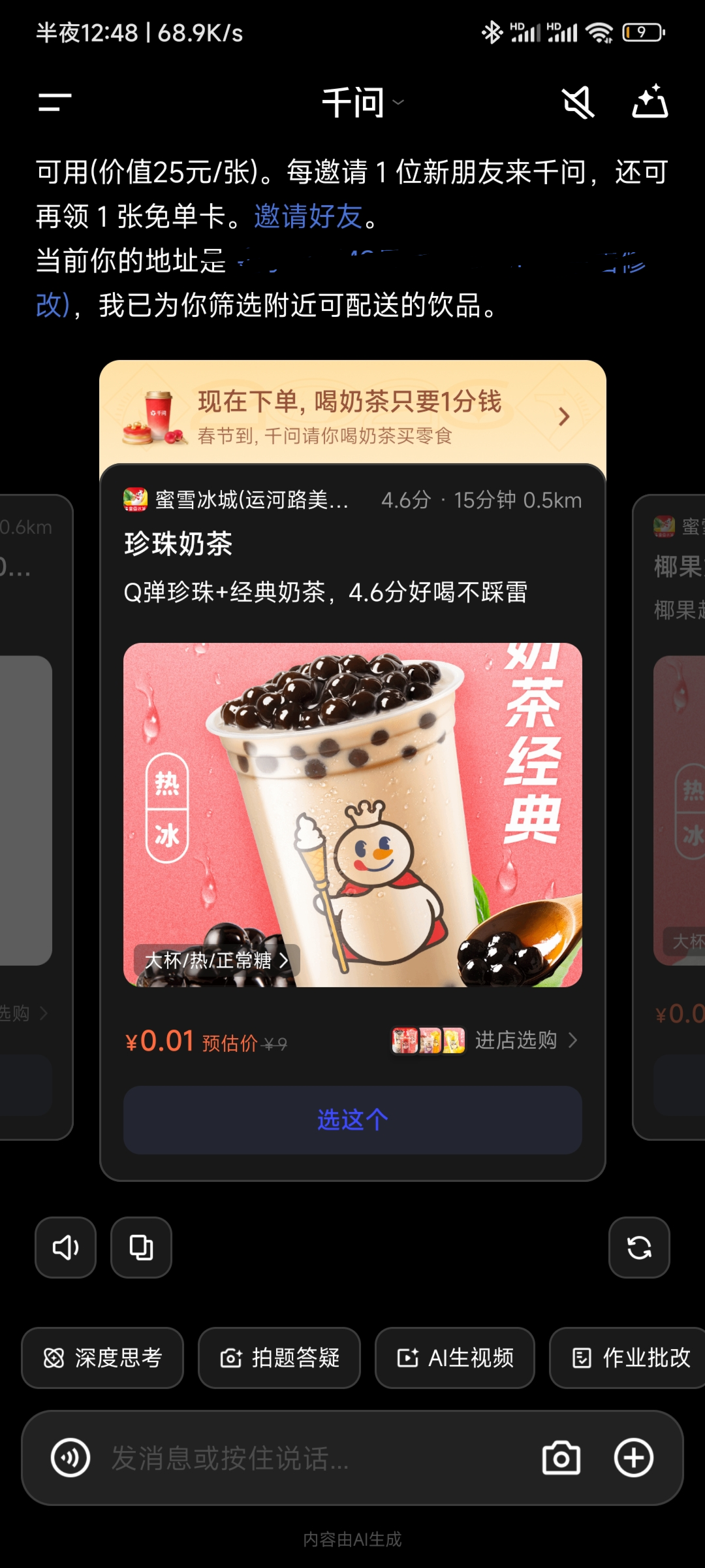 千问一分钱奶茶串( ゚ 3゚)