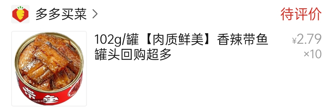 可以试试蹲一下多多买菜,买的带鱼罐头,味道还不错。不过其中蛋白质每百克只有15.8g