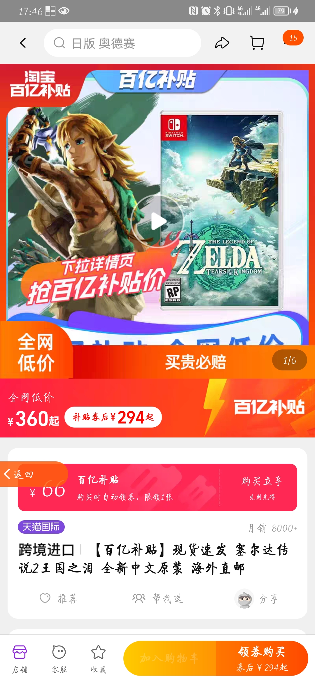 虽然早早就360预购卡带,但是由于做毕设而现在都没摸过switch,看到这个价我感觉我亏大了(;´Д`)