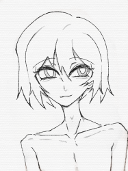 他的左耳和右耳头上都有痣,但被头发挡住了。他非常苍白,有虎牙。