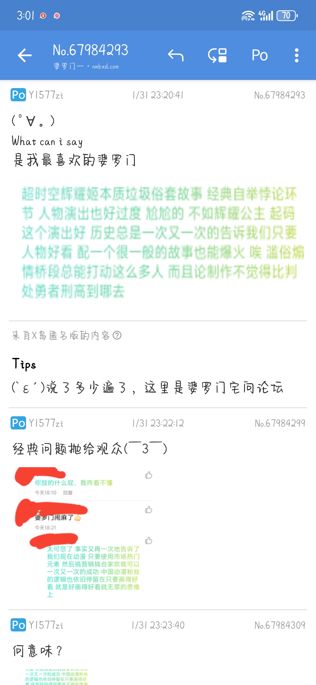 何意味,你觉得他们对这个番的评价有失偏颇。那为啥不直接去跟他们争论而发岛上。想让肥哥们代替你去骂他们吗,而且隔空喊话啥的也太弱智了( ゚∀。)