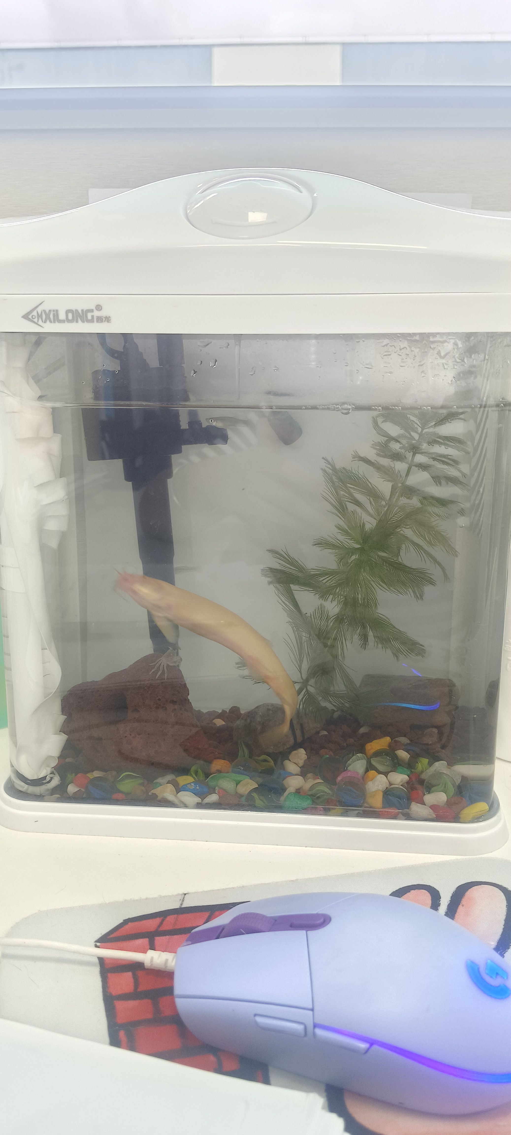 这是本肥人生第一次养鱼,15*20*30cm的缸养了大概三条河里捞的小孔雀鱼和三只小螃蟹,螃蟹昨天牺牲了一只,然后前几天同事送了一只8cm左右的黄金泥鳅,这玩意也太活跃了,几乎是一刻不停的在游,有没有啥方法能让它安静点(;´Д`)