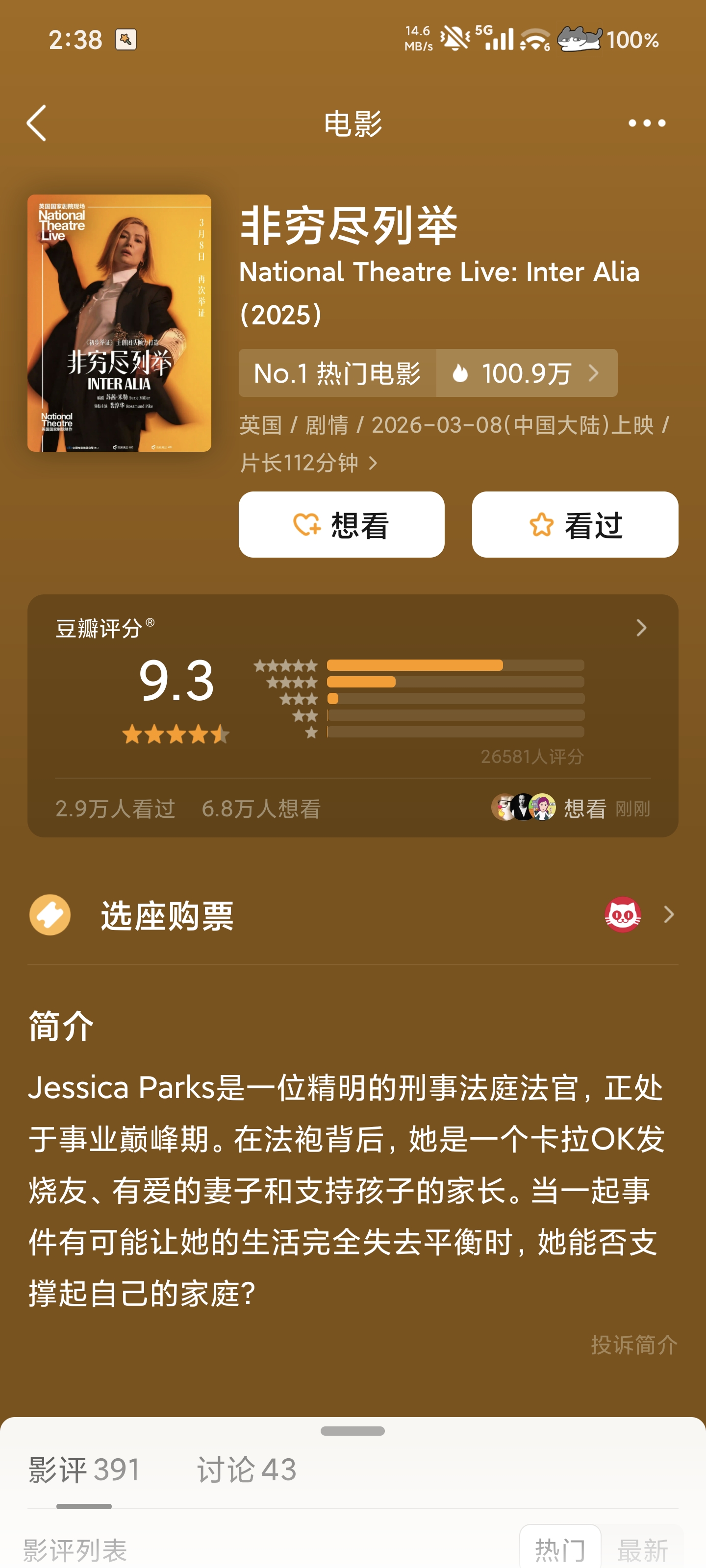 这电影想说的太多又不敢多说,立意稍微有点浅显浮于表面,能看懂,但是又不敢多讲的感觉,关于女性职场、平衡家庭、性自由等等都算是有点一笔带过。关于女性选择事业还是家庭、正义还是私心的探讨,犀利程度还不如脱口秀。