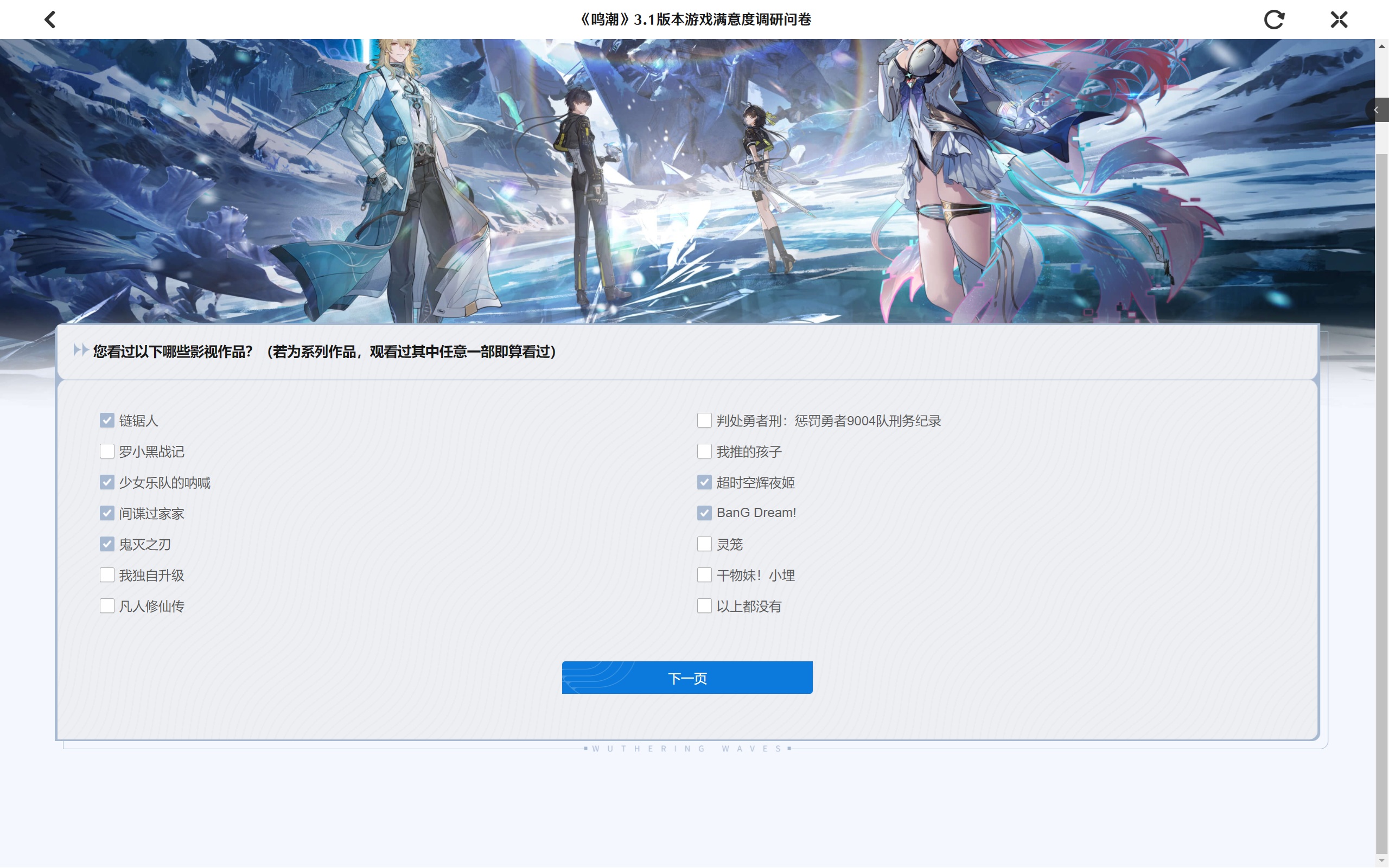 看这个问卷的意思是有搞联动的意向了吗,后面还有一个玩过哪些游戏的页面,一看要求是付过费并且玩的时间超过20小时的,这么一算就只有舟和MC了,还有个33号远征队估计时长不够,其他都是没玩过的,也是难绷( ゚∀。)7