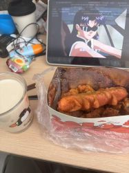 今天中午吃了美味的炸物三拼,喝的是茉莉花茶➕旺仔调的小甜酒,yummyyummy(=゚ω゚)=