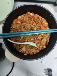 罐头里面是老干妈里面那个豆子和鱼放在一起做成类似腌鱼的感觉?单独吃确实蛮好吃的,就是看你我加热方法不对,吃起来有点太干太油了,感觉还是得加点蔬菜可能就好多了?