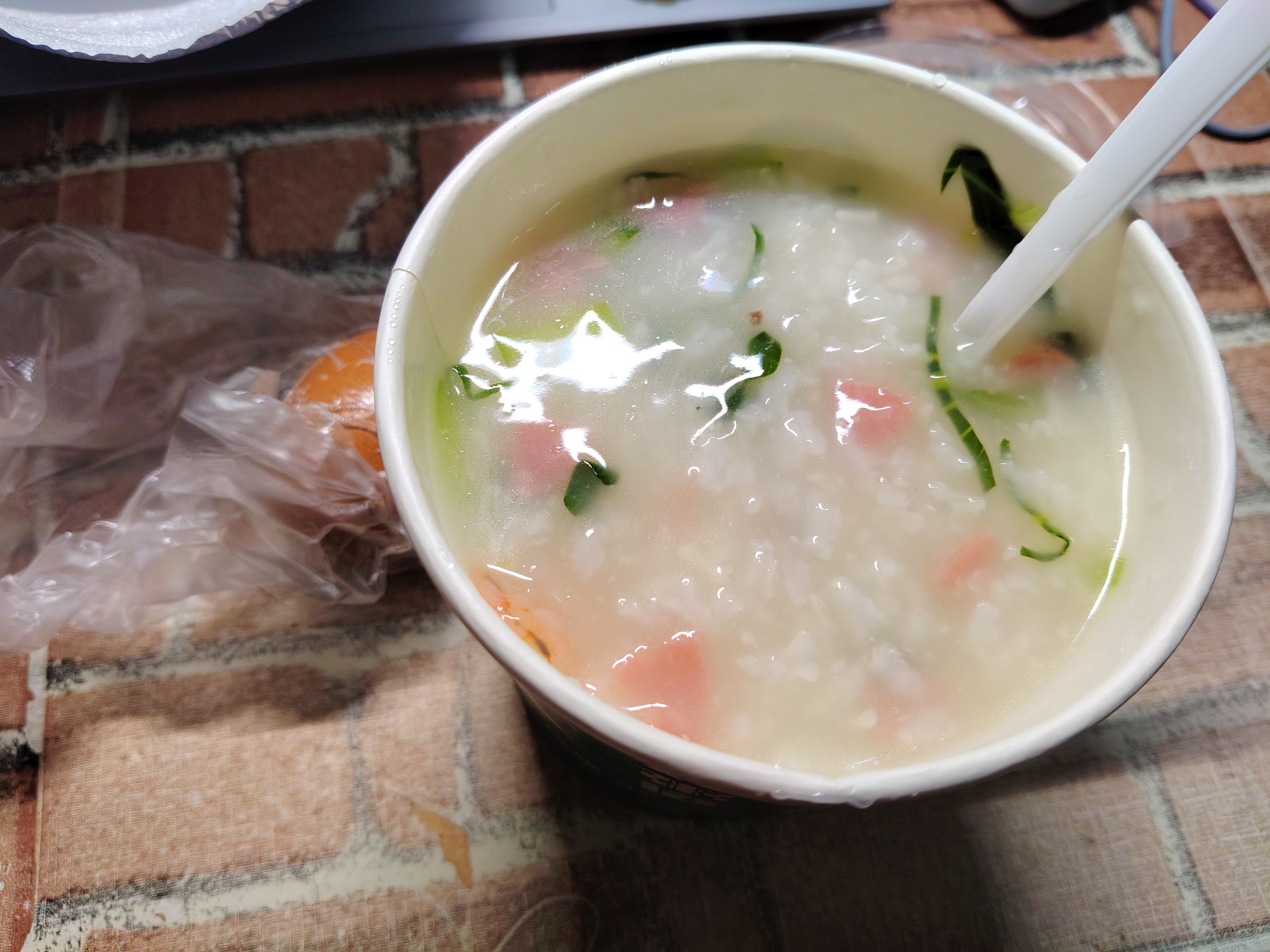 说是海鲜虾球粥,但是虾仁只有小小一个,还没处理干净( ;´д`)