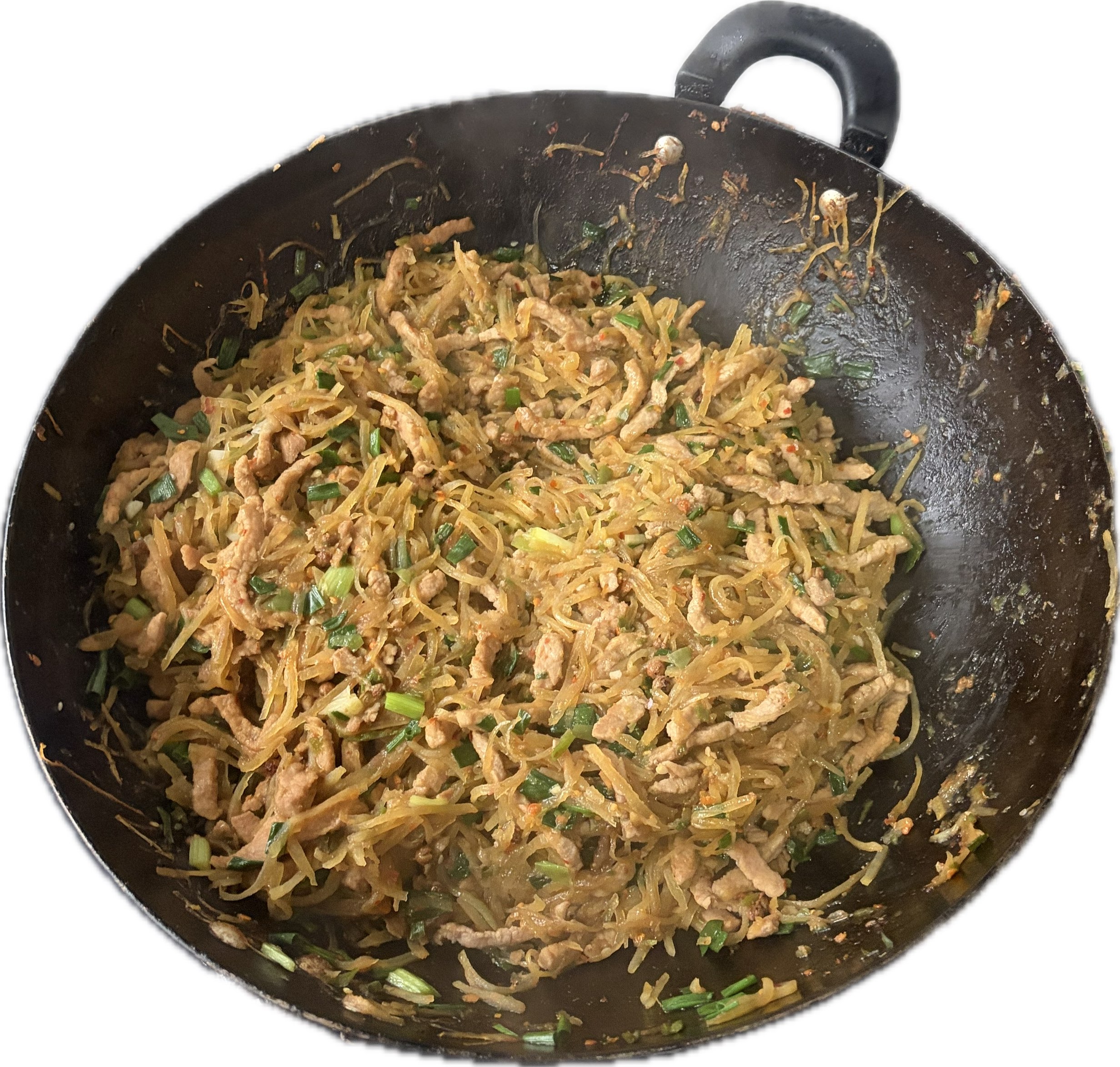 土猪肉里脊+剁鲜青椒碎+土豆丝+过量小葱花