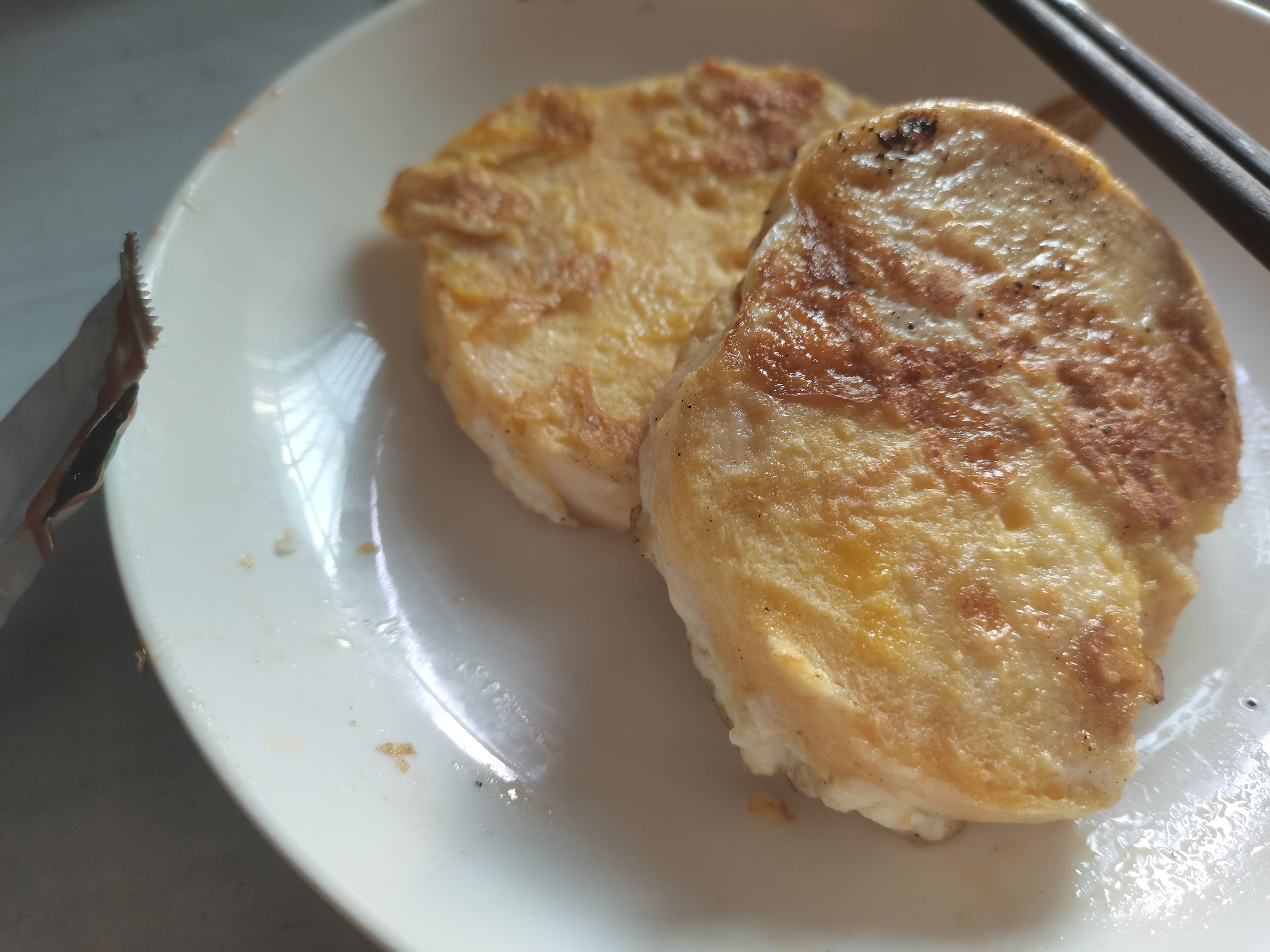 口味:难吃的要死。没熟透,侧边还有鸡蛋液缓缓流下,调味为0,盐放少了,跟啃大白馒头没有区别( ´ー`)