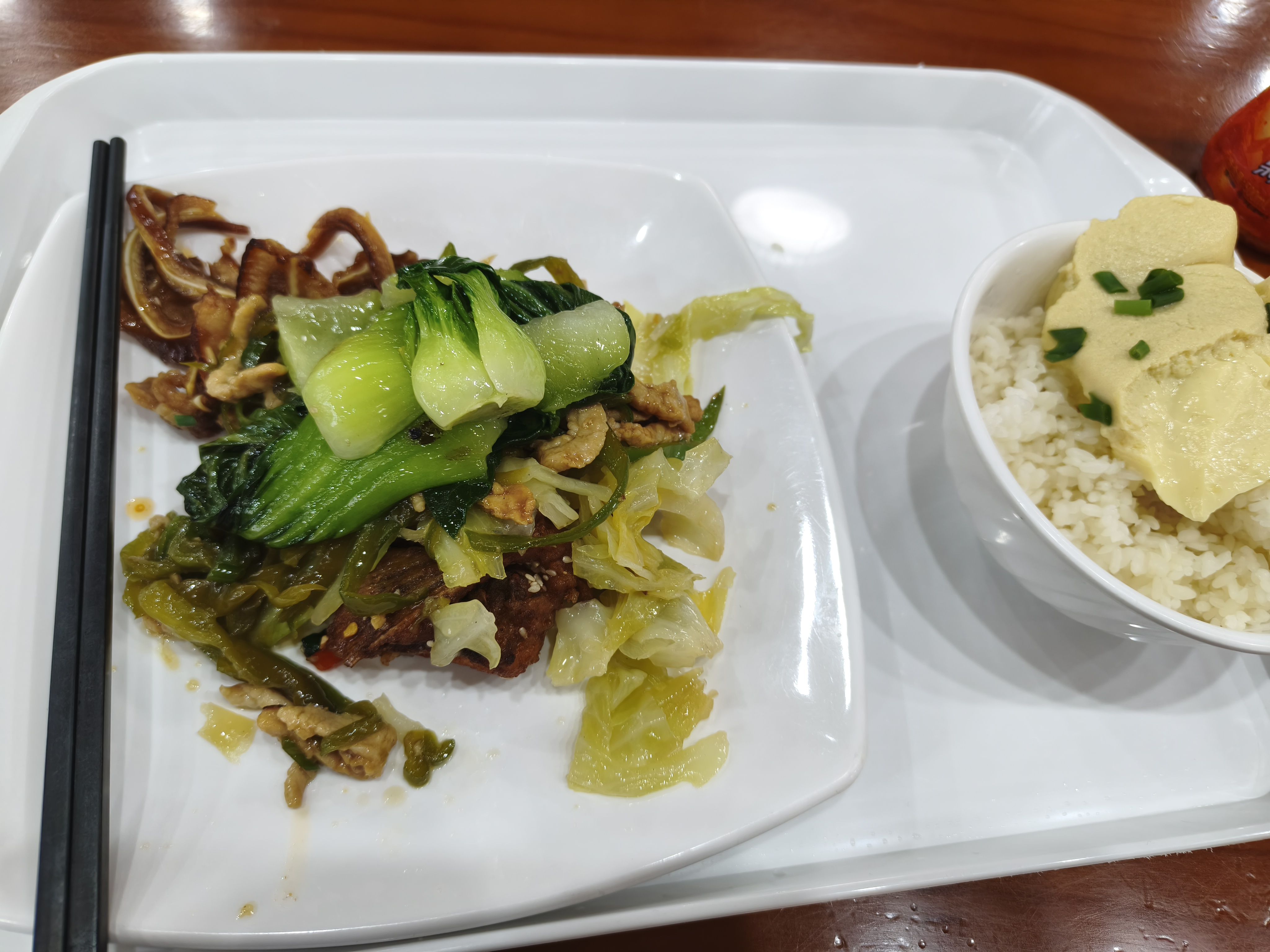 环顾食堂没得吃。又是不健康的一餐(´゚Д゚`)