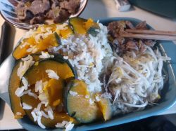 蒸南瓜、清炒豆芽和泡椒牛肉( ´ρ`)