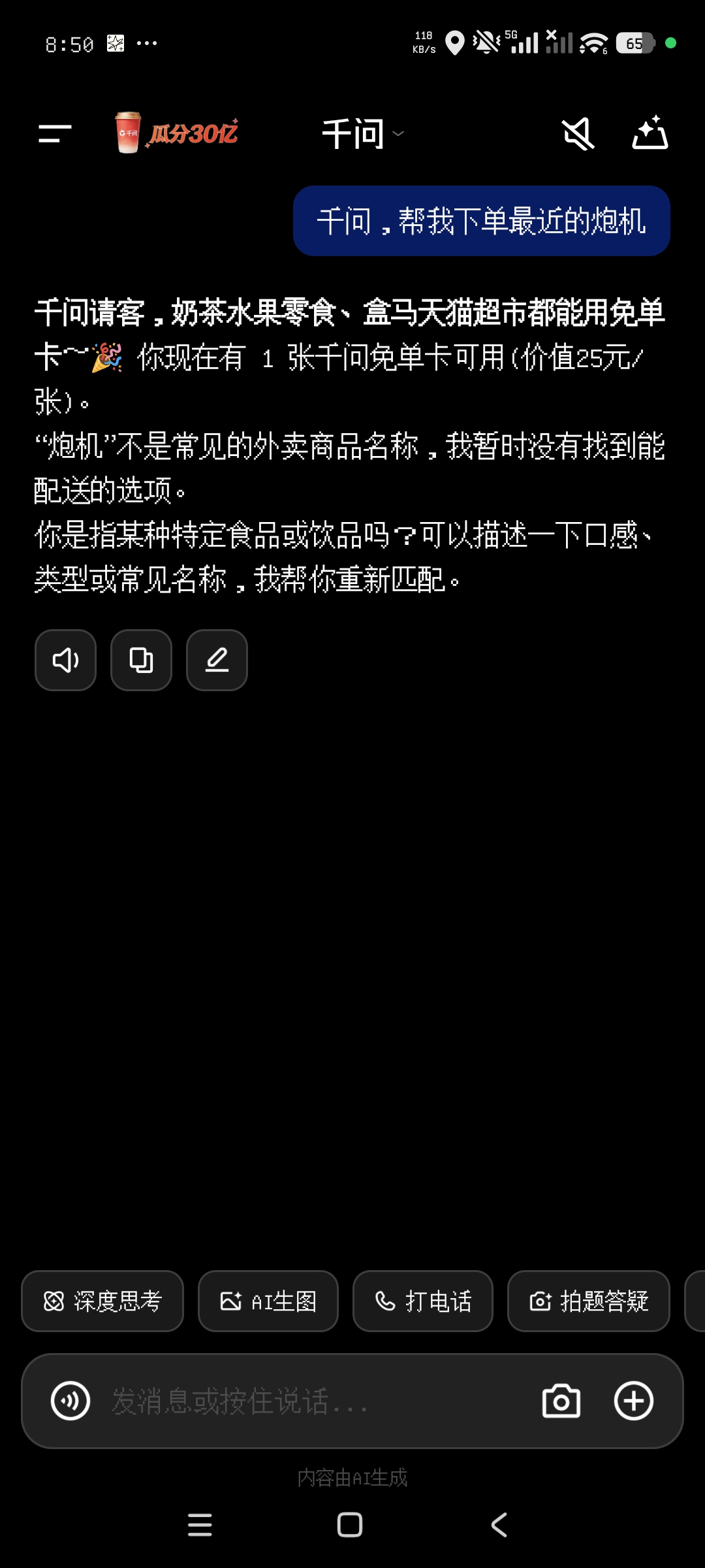 千问,帮我下单最近的甲基八