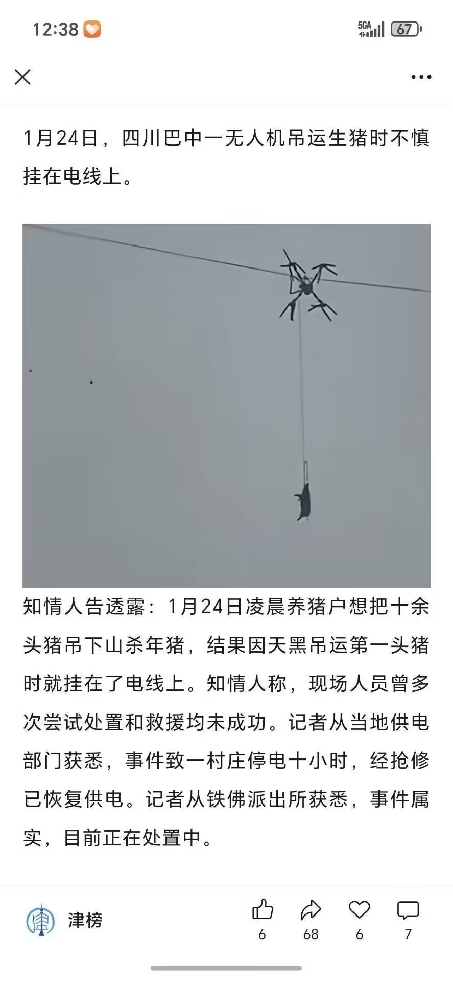 ( `д´)σ在我们文明的国家,会因为一只落在电线上的大肥猪停电10小时