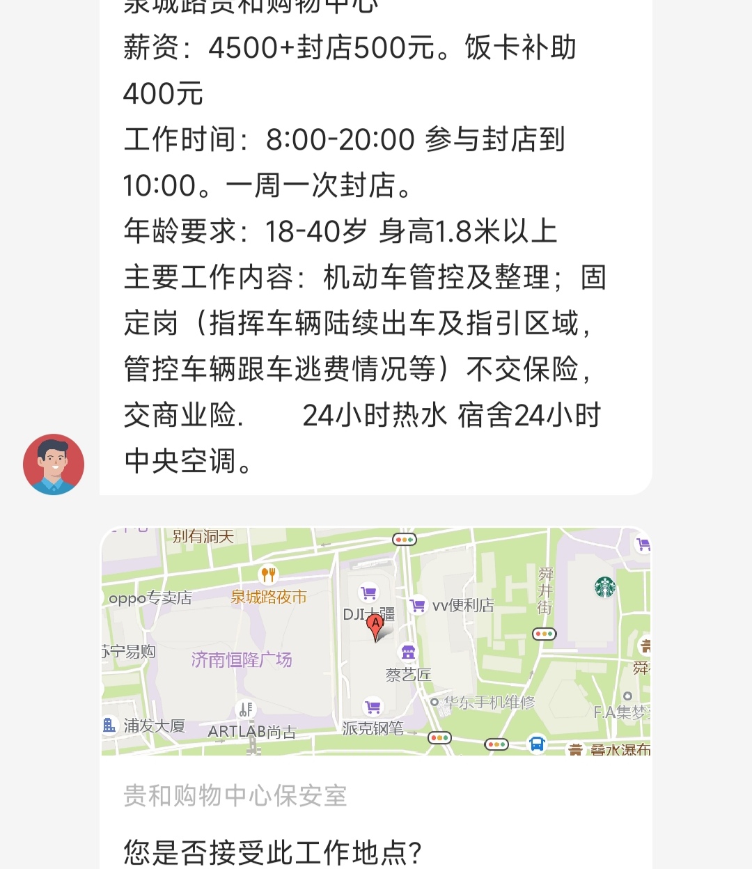 | ω・´)工作要求看起来就是停车场保安嘛,你能接受就去试试咯。