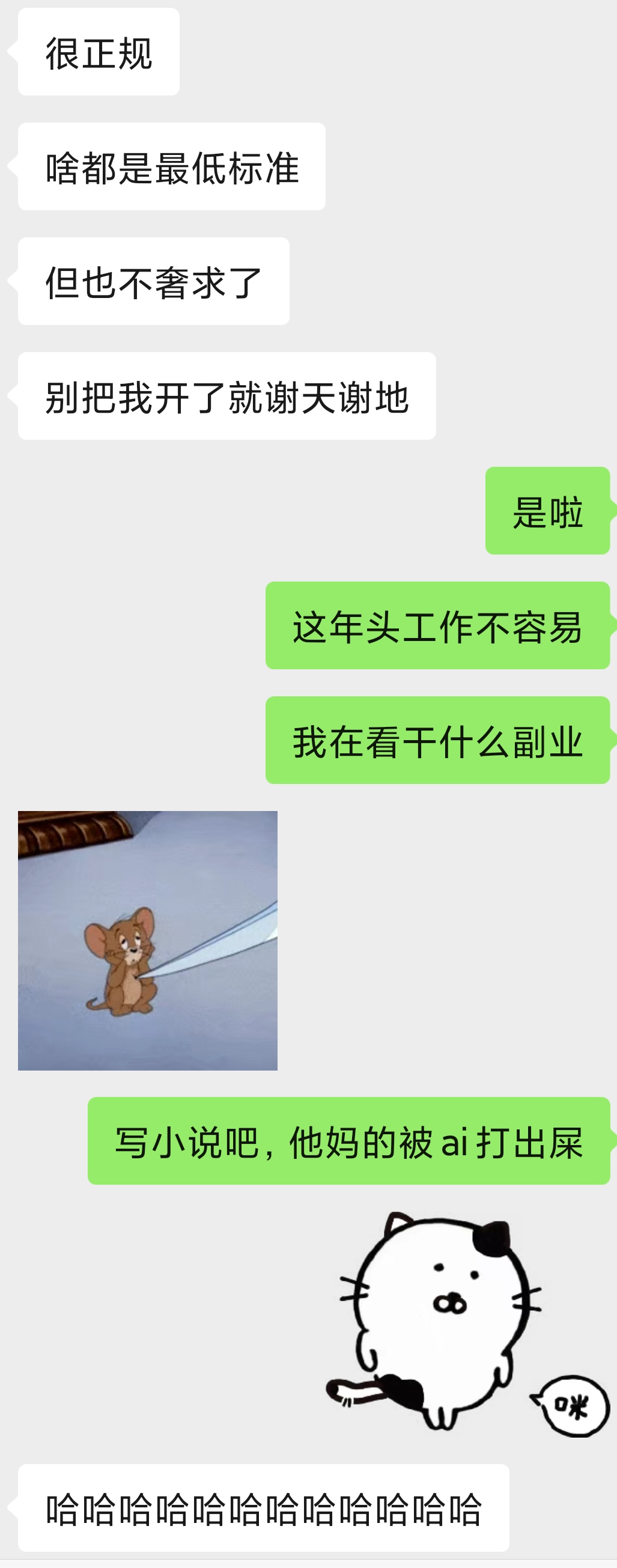 肥是某个专科学校的建筑工程专业的家伙,去年校招整个年级三个班走了大概半个班的人|∀゚,大部分人都在磨刀霍霍的准备专升本在混两年,现在肥在跟高数对线,想放弃看了看老家周围的招工信息老老实实的滚回去接着跟洛必达牛顿他们对线了(;´Д`)