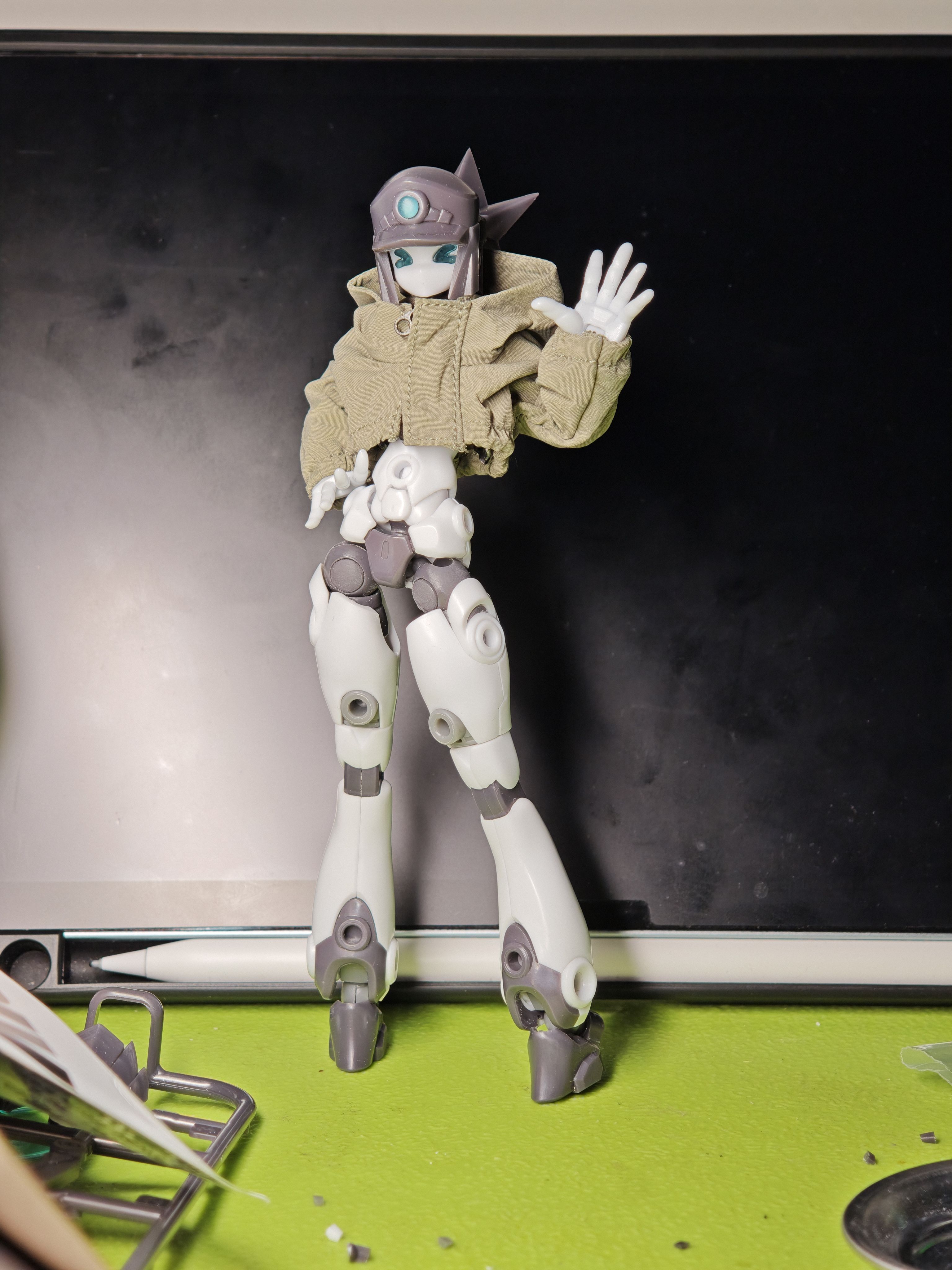 补土捏衣服好难啊,一开始当成衣服裁片然后贴上去。然后发现糊上去再切片才顺手,捏了半天有点起色才发觉补土里混的全都是碎毛(;´Д`)