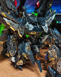 出差带了个长龙5503,感觉和5501比起来松了很多,几乎用不上大力金刚指,但也很容易掉件,天线和裙甲非常容易掉,但是没带胶水只能回家再粘死,长龙这台预计是要改重牛的,家里还有一个万代的海牛在堆积(;´Д`)