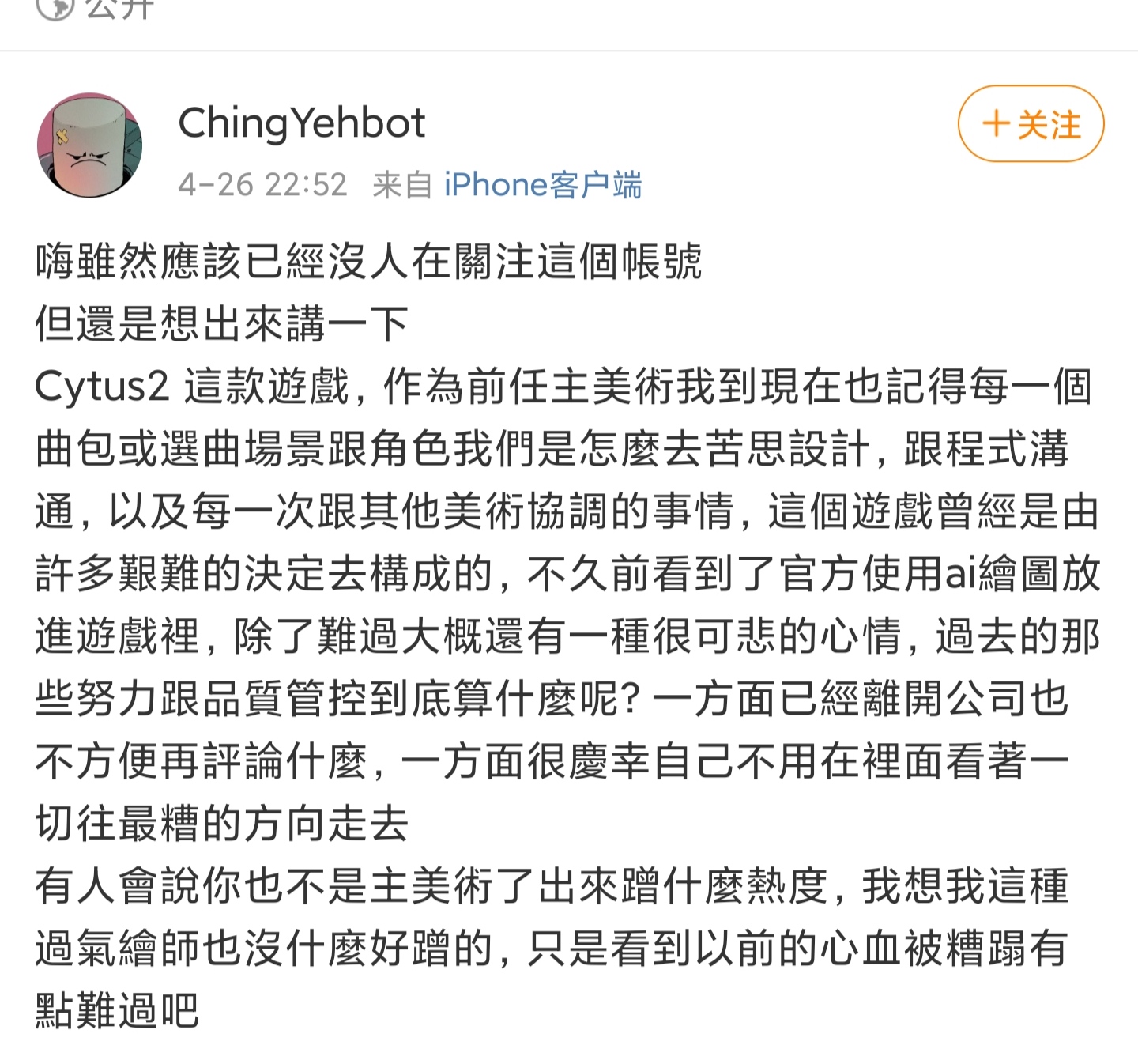 没办法,ice那事对cy2打击太大了现在主线剧情感觉也走得差不多了