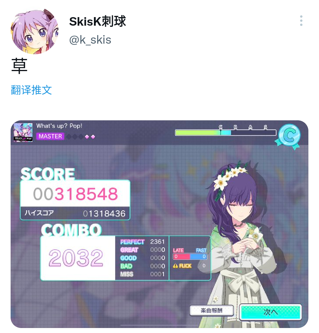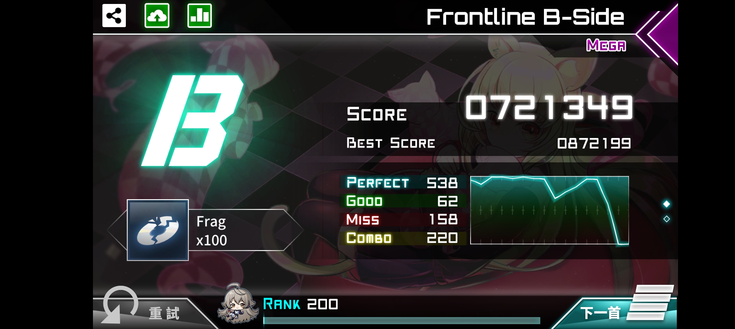 ( ゚∀。)这是11?偏偏这几天只有这首歌在活动里,打过的次数只有一半左右( ›´ω`‹ )剩下的难度打过去比打mega一半的收益还低,太折磨了