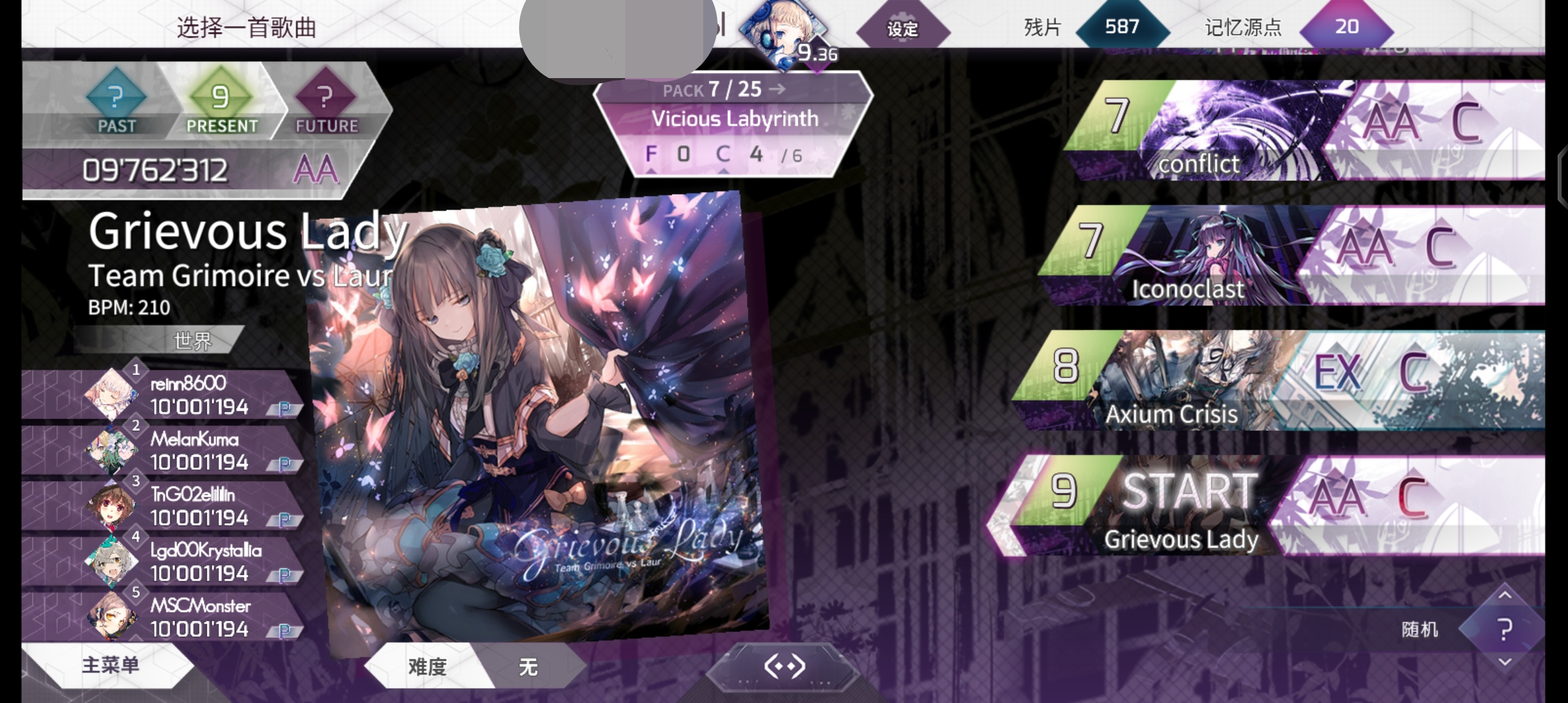 之前推testify最高只到969w,之后就一直在930w到920w之间浮动,再也没上过960w,其它prs9基本都在打出的最高成绩上没有突破,感觉很焦虑……打开音游是为了爽而不是看到毫无进步的血压升高啊