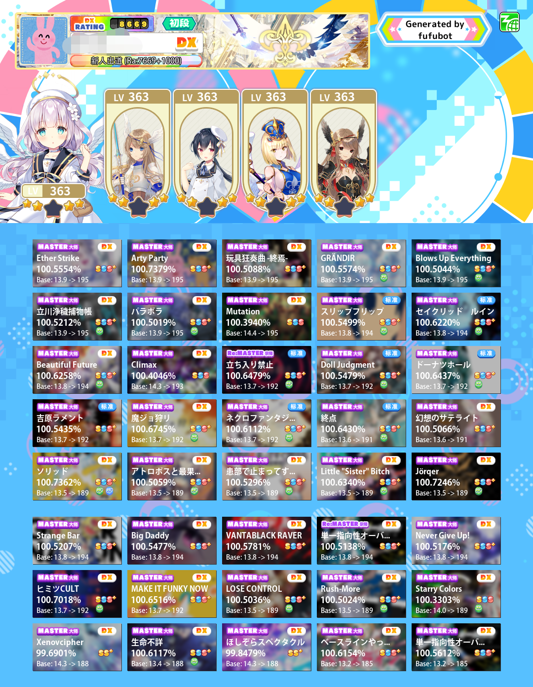 b40镇串,目前7669,感觉等过两天更新新歌打完就能上7k7了!