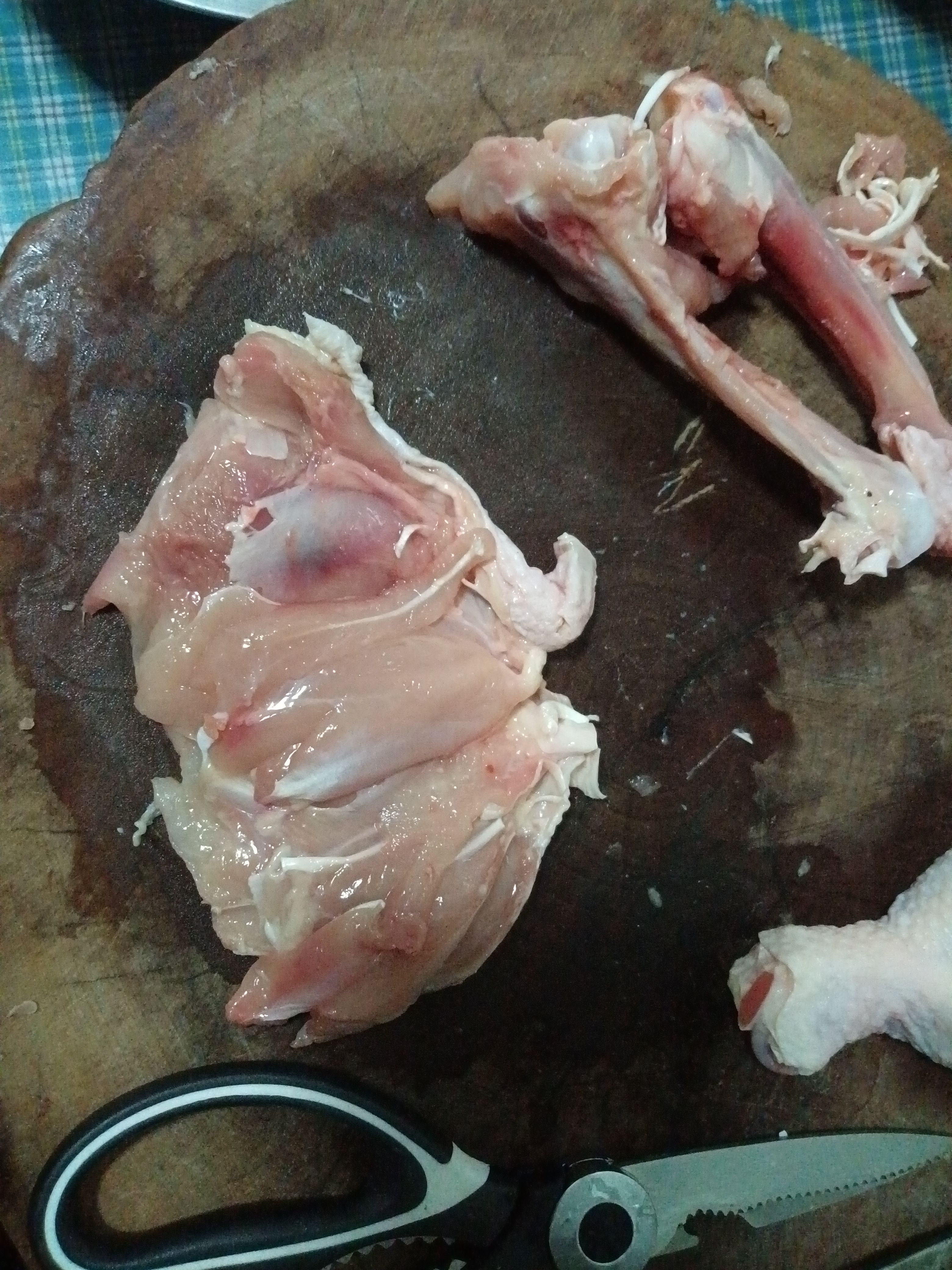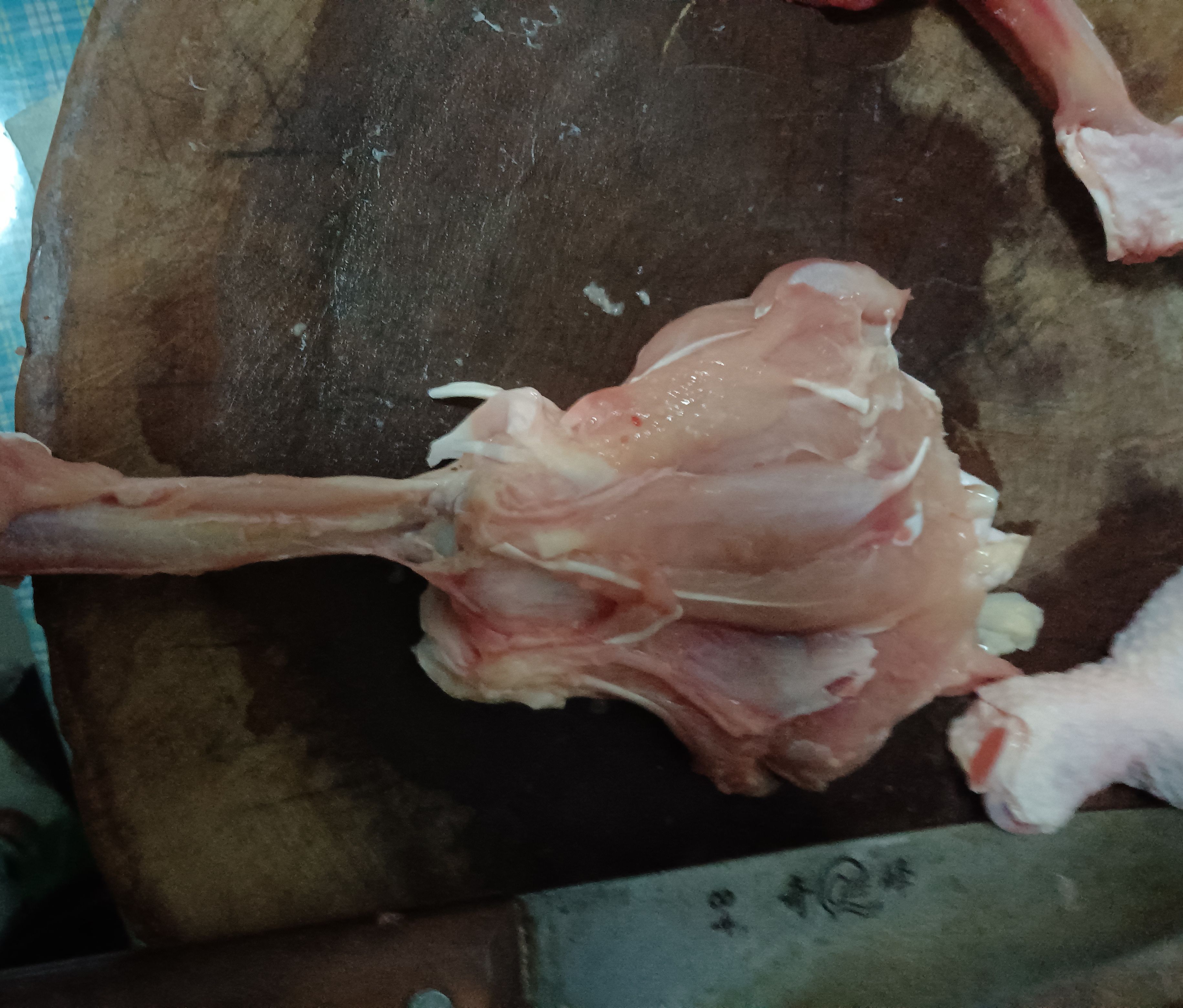 我们就得到了完整的鸡腿肉(和骨棒)