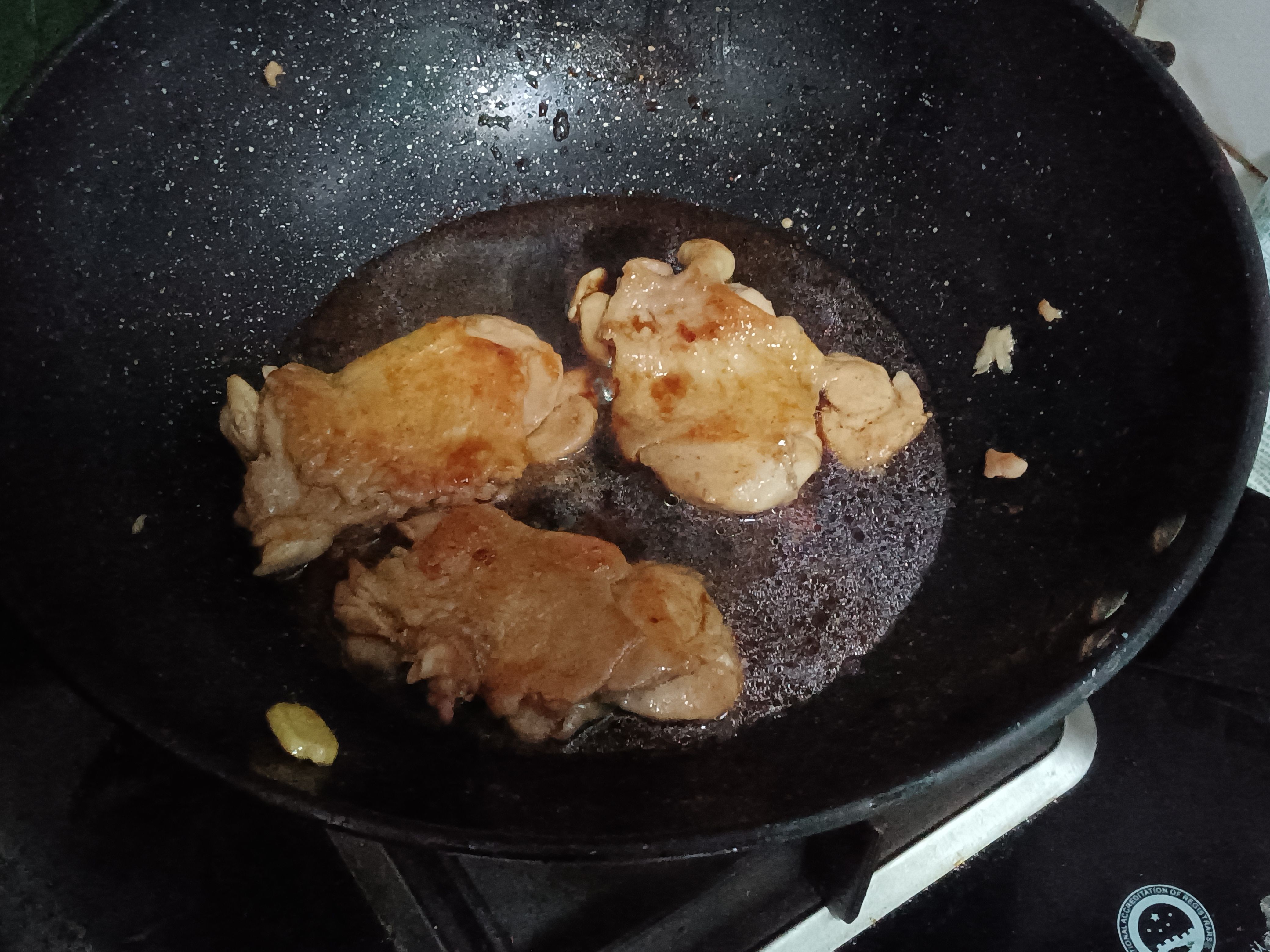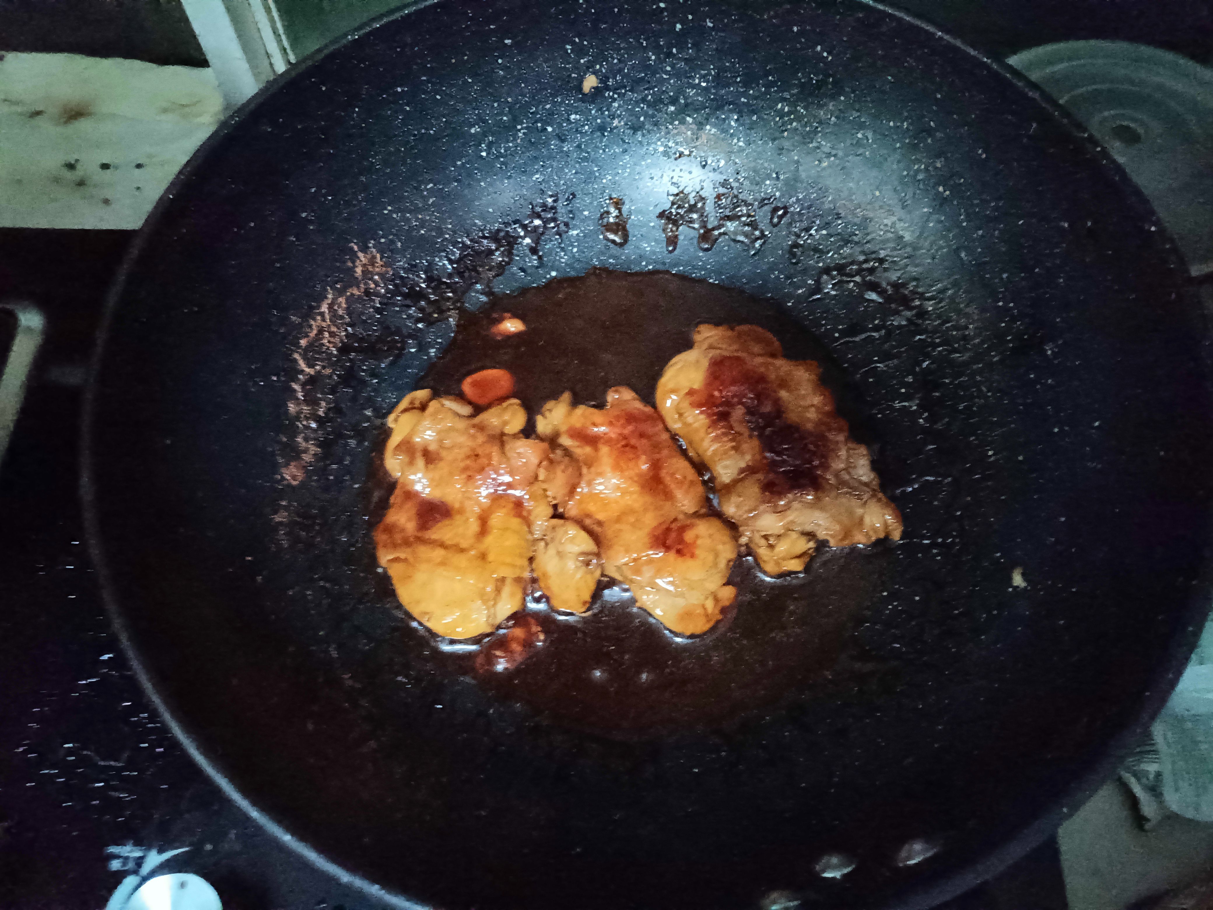 锅底喷点油 鸡皮朝下下锅