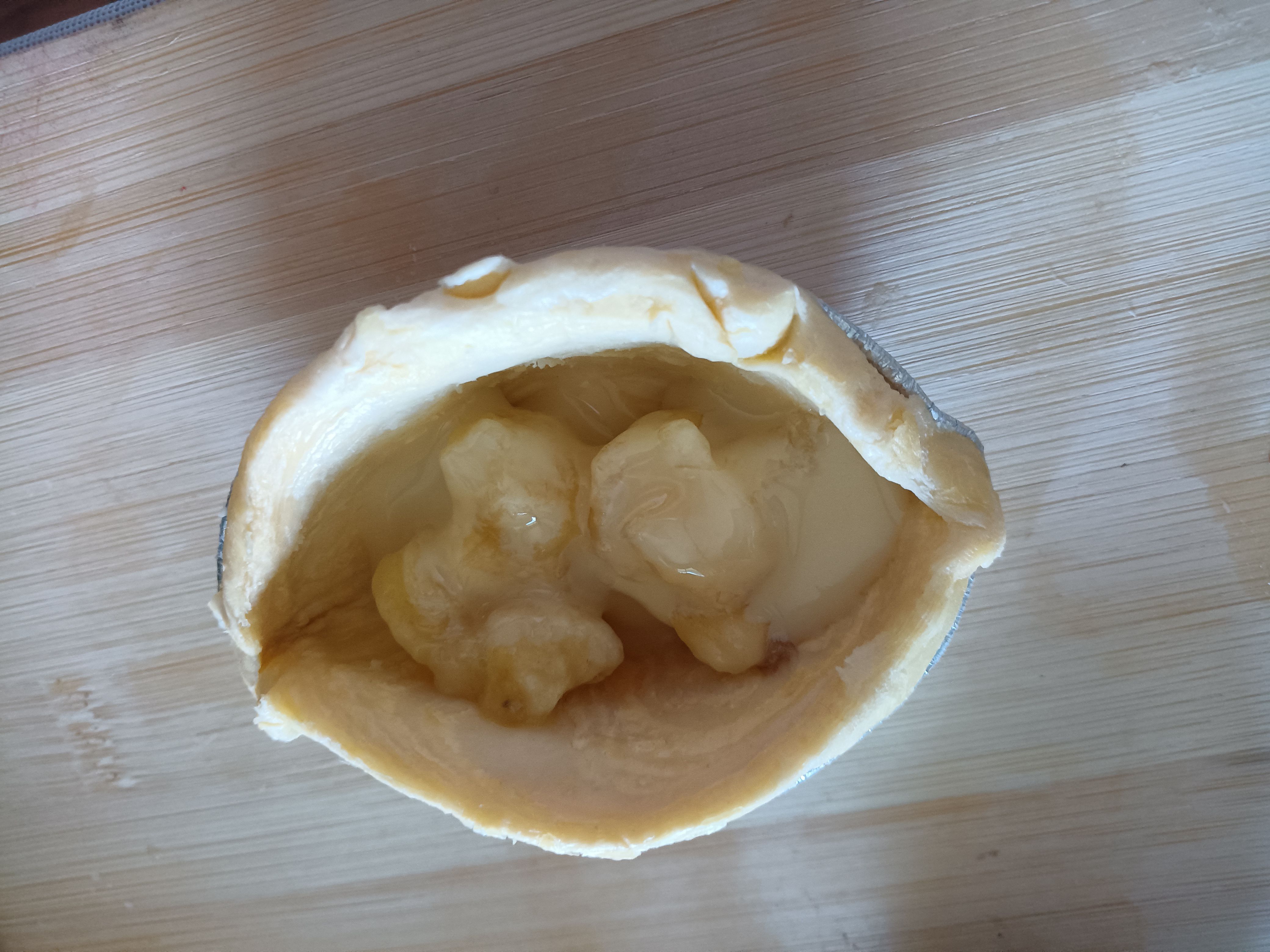 蛋挞皮里放进稍微有点泥的香蕉 再加点炼乳(=゚ω゚)=