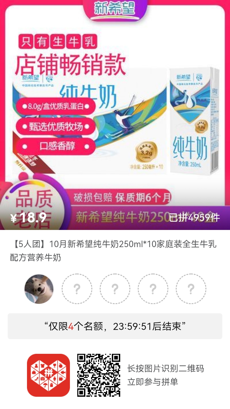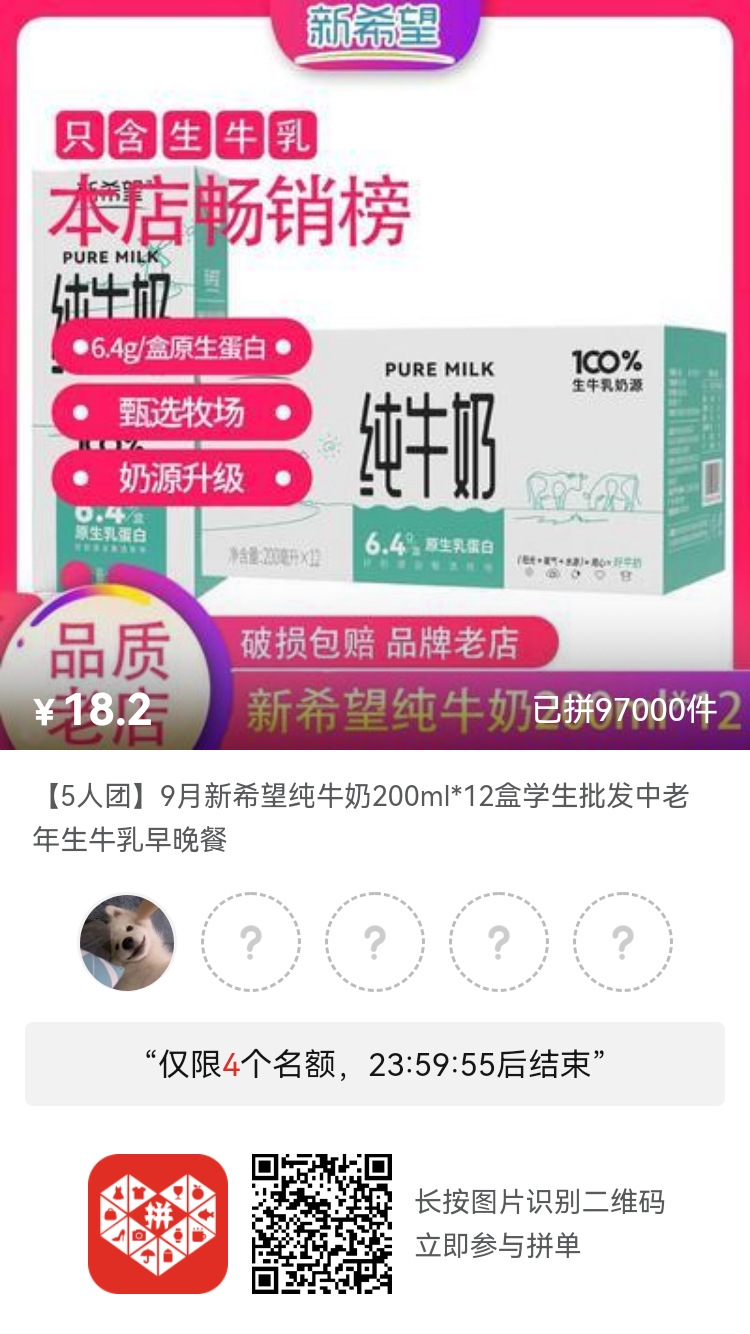 ( 」゚Д゚)」<牛奶牛奶,这家牛奶已经没有单买和拼团一样的好价了,速速与我开拼!