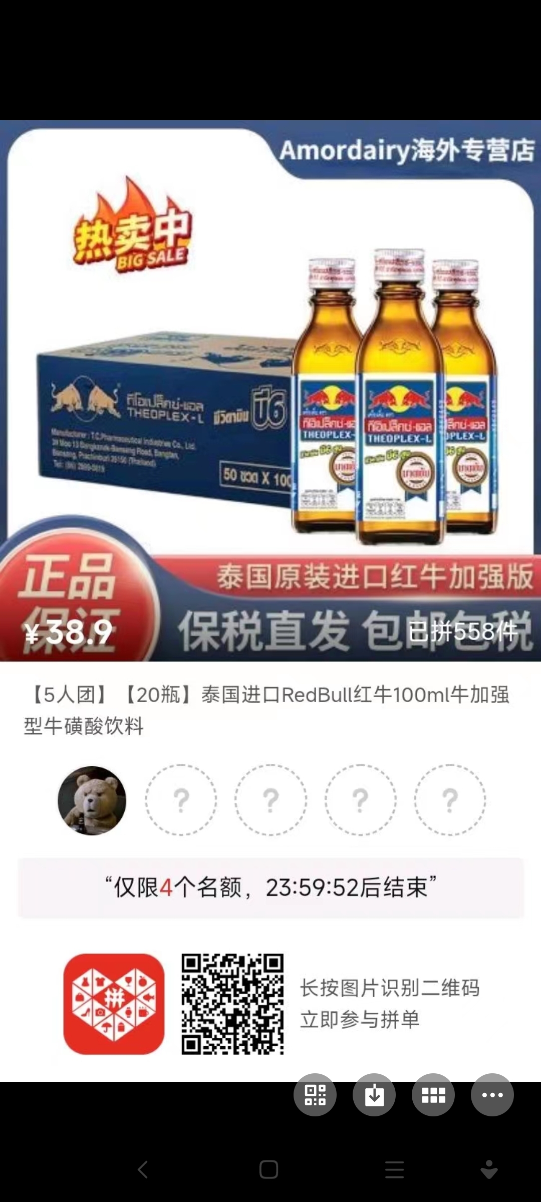 红牛,5人团,20瓶