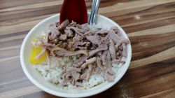 很好吃的鸭肉饭,但小贵又小份,黄色的是腌萝卜