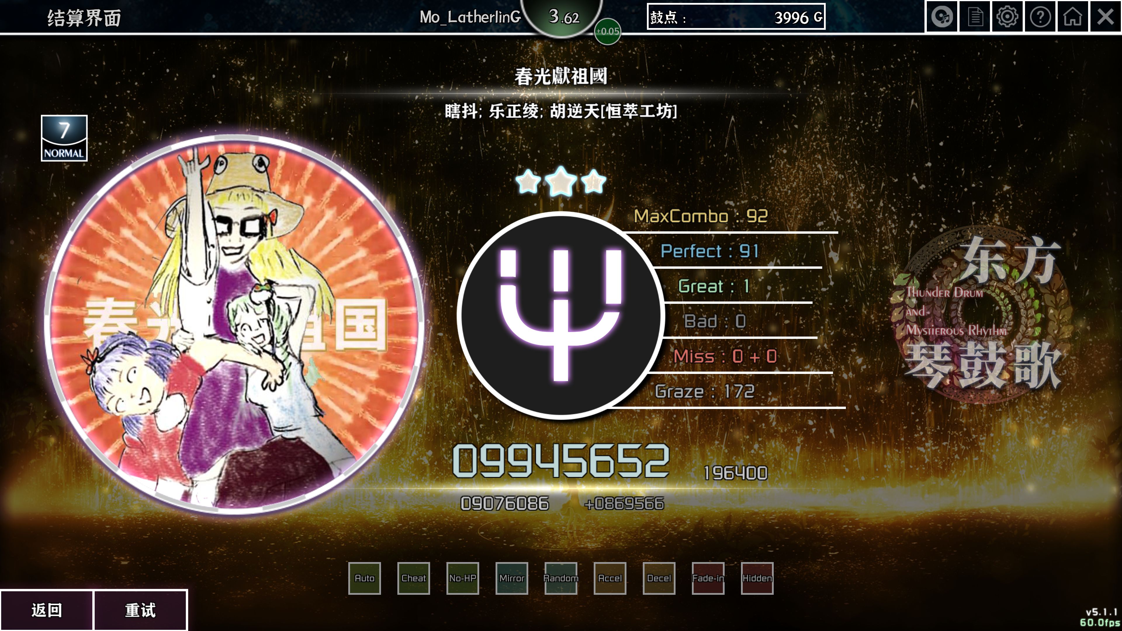 下一个,始于音游,延续音游!打东方琴鼓歌任意曲目任意难度!⊂彡☆))д´)