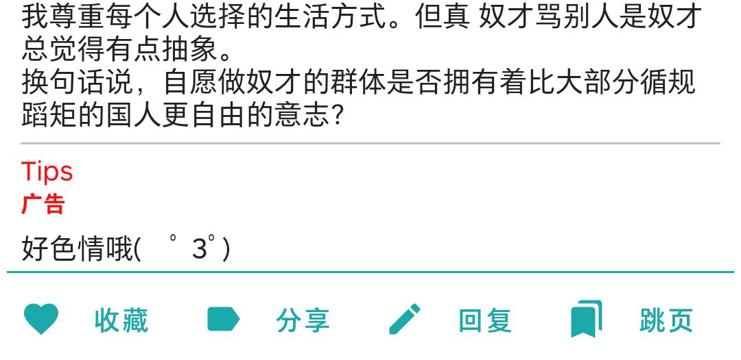 这个脑回路是怎么想的?( ゚ᯅ 。)7。a说国人没有自由但他主人把他棍切了的时候他也没有自由啊。