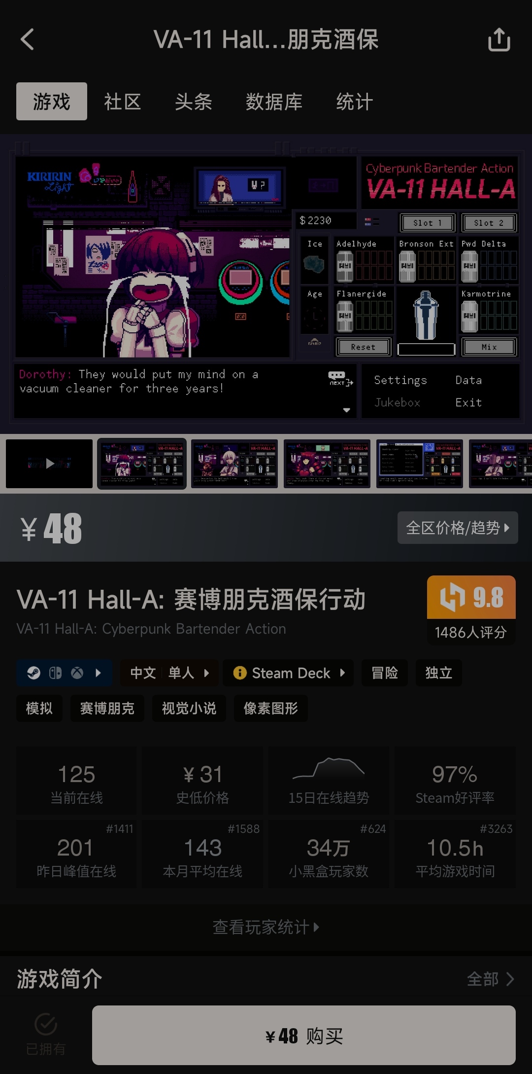 赛博朋克酒保行动?不清楚符不符合肥哥你的要求,我最近也刚刚开始玩( ゚∀。)
