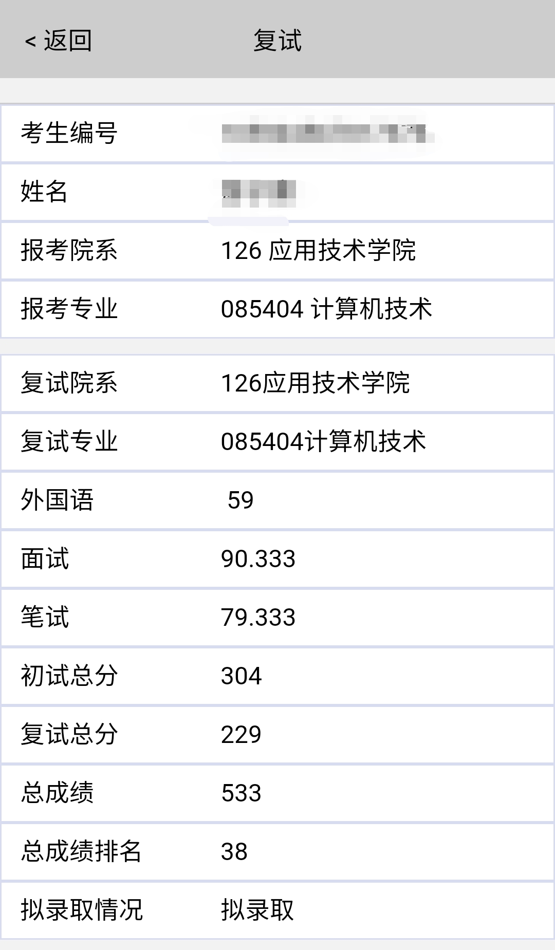 然后我问了一个复试分数比我高一分的同学,他的排名前进了两名。