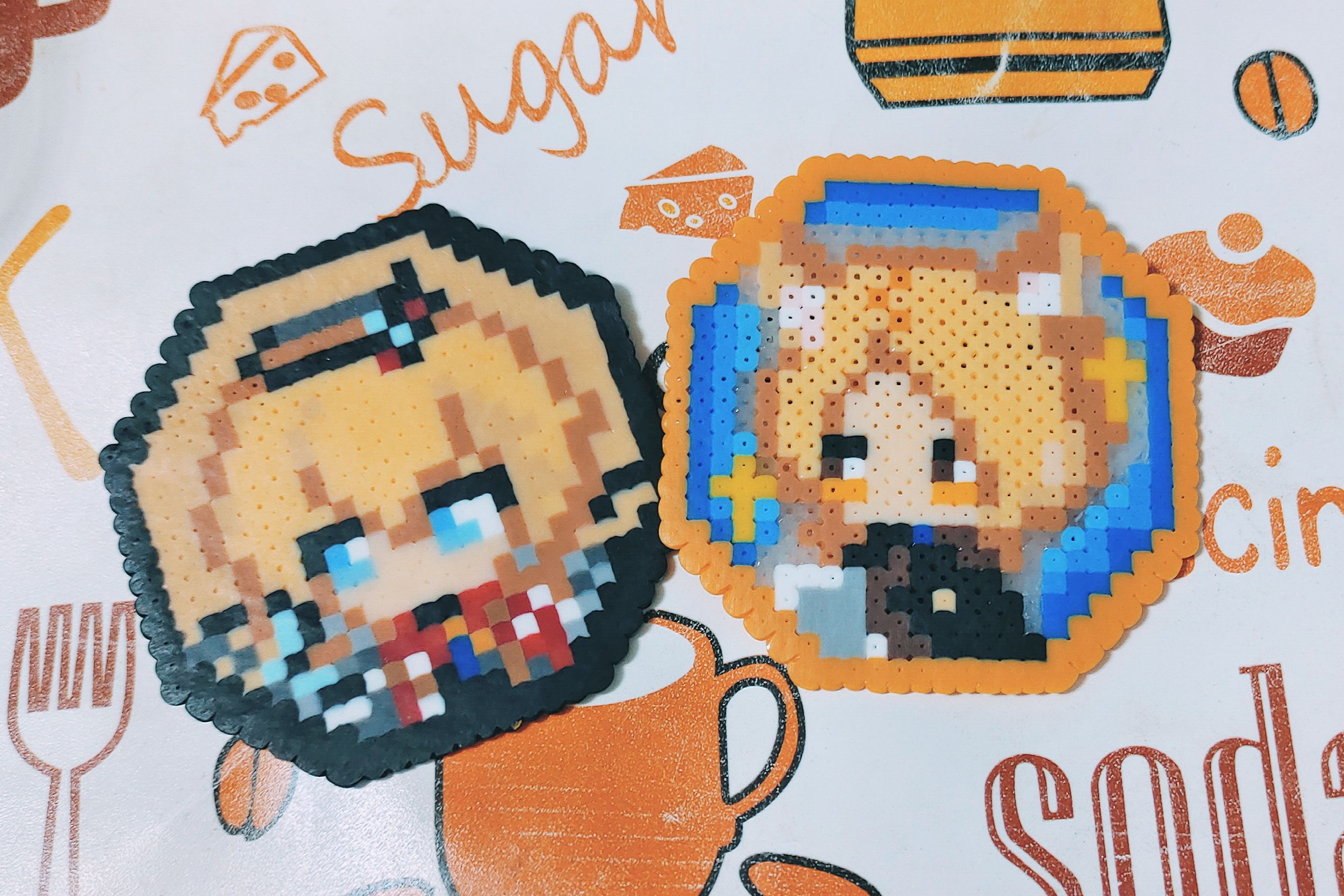 星星纸太多怎么办,拿来做背景板,整点拼豆当配饰,一个吧唧托就出现了!( `ᵂ´)