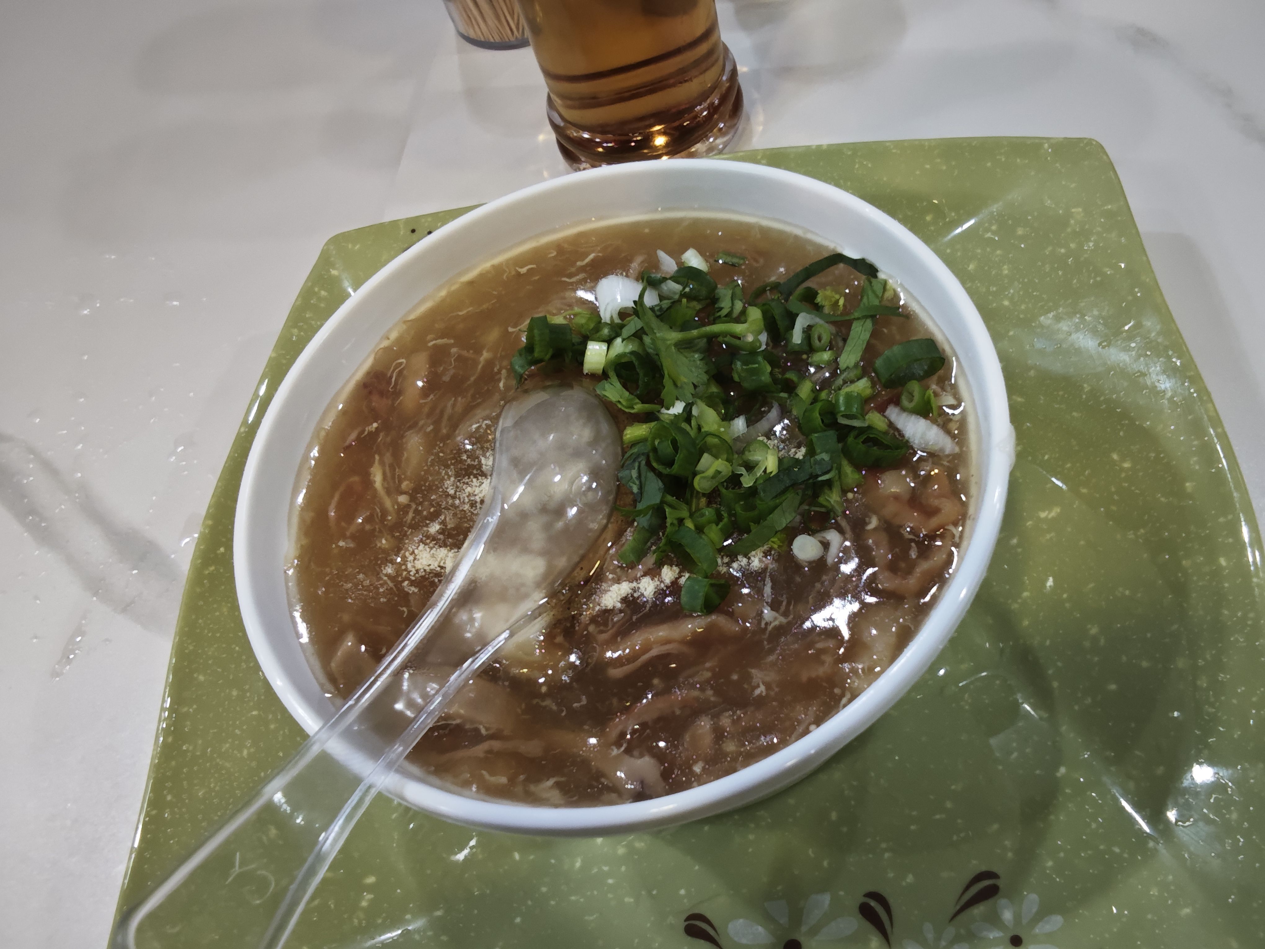 食盈碗仔翅,这是今天吃的第二家碗仔翅(因为第一家忘拍照了),20r一碗,勾芡比较厚,但是舍得放料,味道鲜甜(甚至比真鱼翅做的还要鲜),花胶品质很一般(甚至可以说是不好,不过它只要20r)