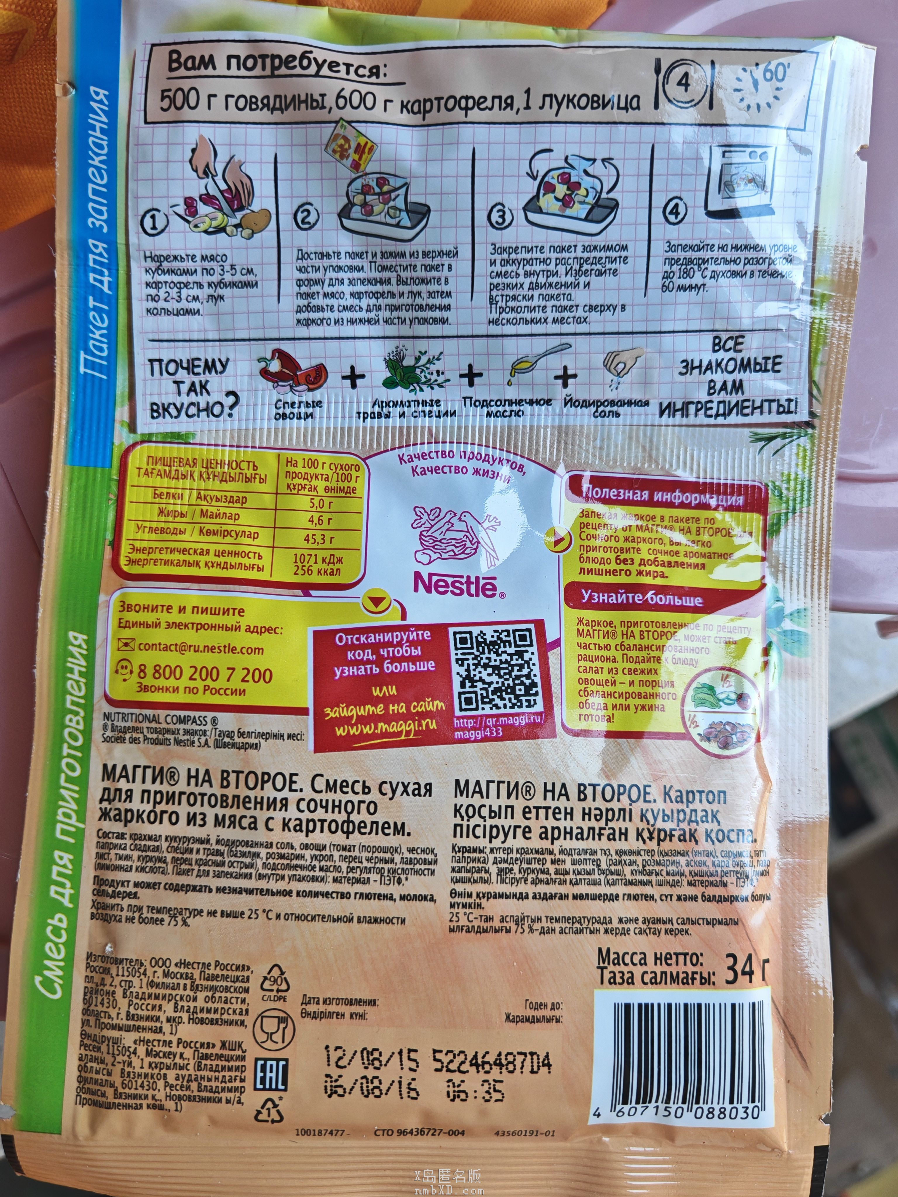 这包是烤牛肉用的,建议500g牛肉,600g土豆,再加一个洋葱