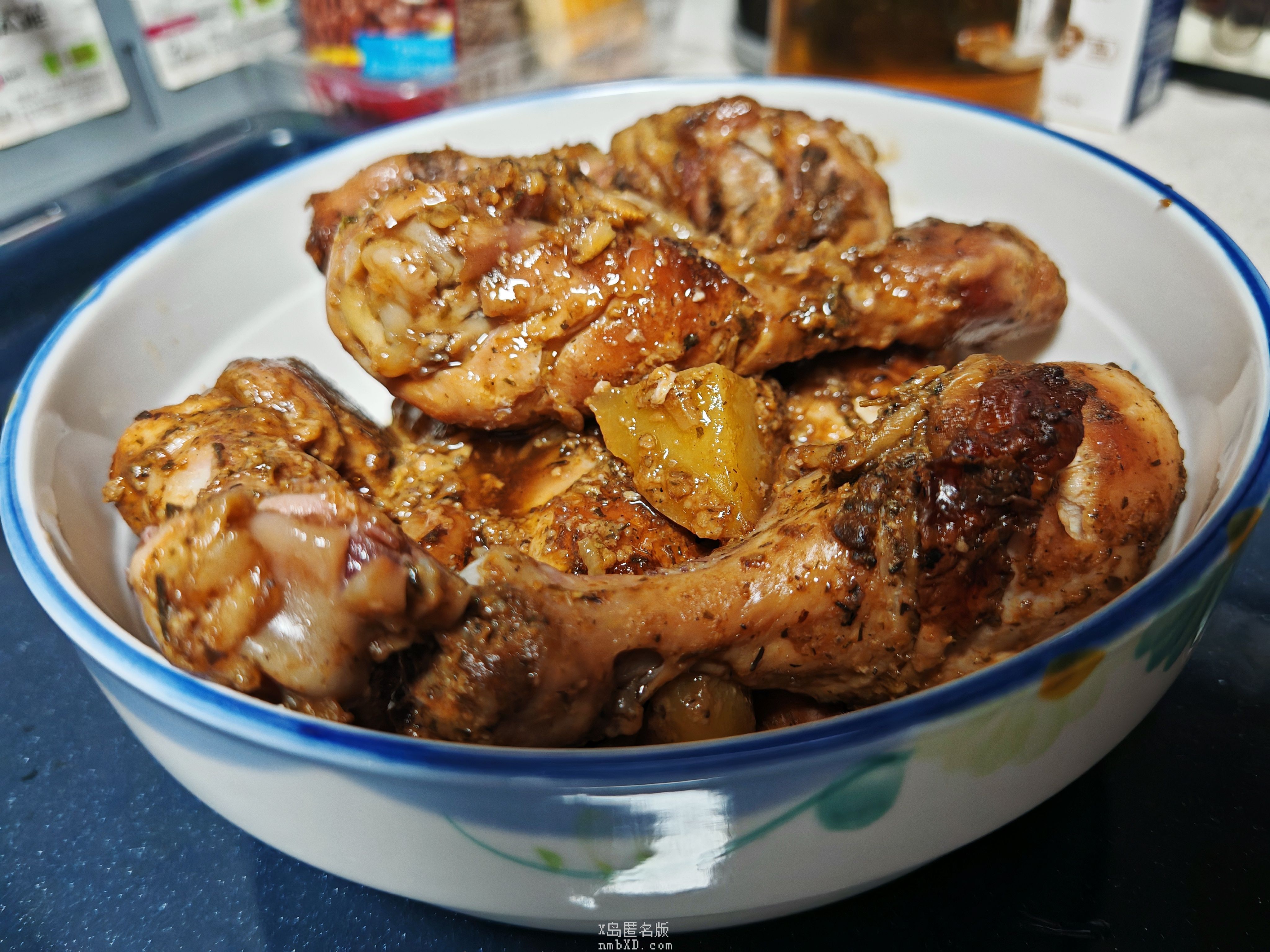 这个塑料袋真是纹丝不动,厉害呀,不知道是什么原理。厨房满是烤鸡腿和大蒜的香味( ´ρ`)
