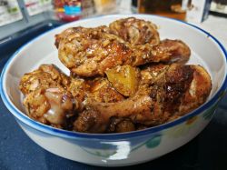 鸡腿这包忘拍了,总之是鸡腿1千克,我买了8个,差点重量,就塞了点土豆进去。鸡腿料包本身就是大蒜口味的,不过还是又剥了半头蒜进去。