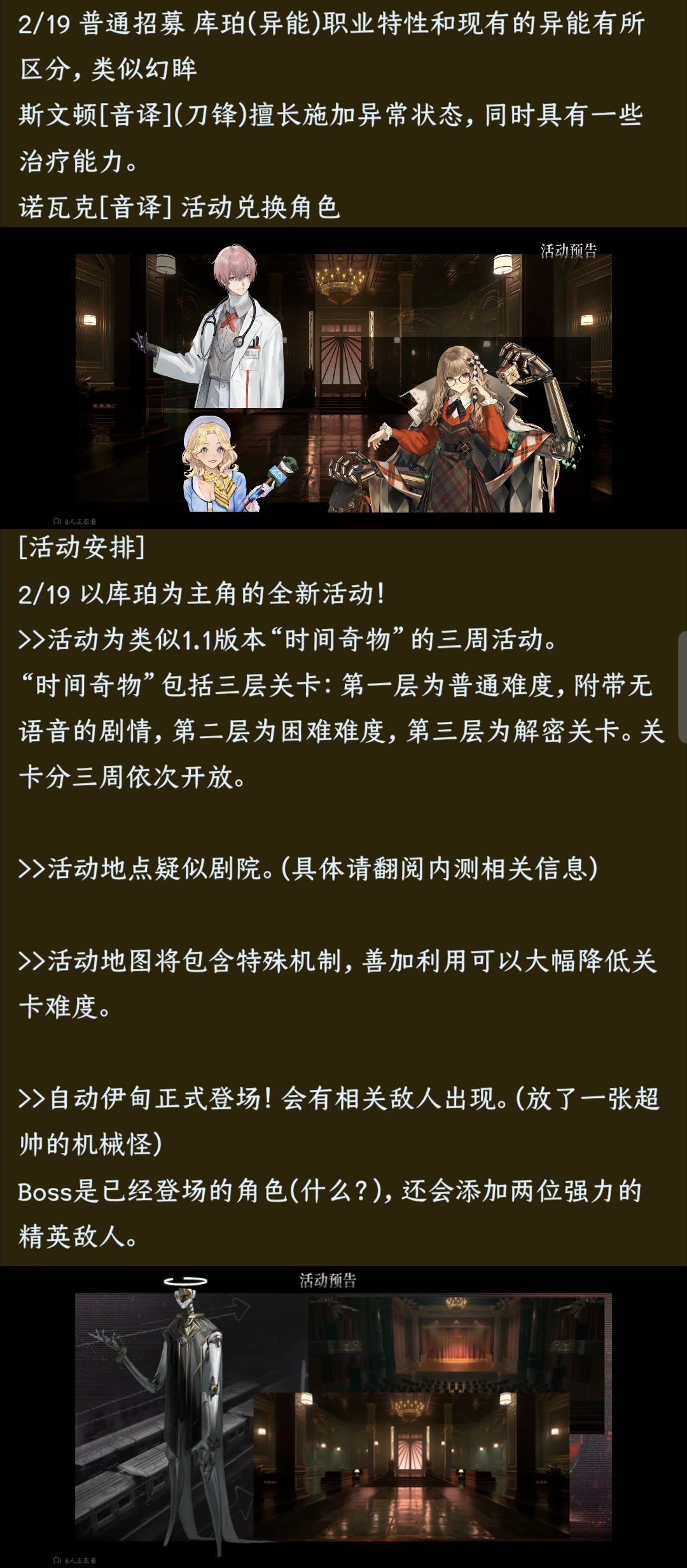 今晚8点制作组直播,包含近期的更新内容、未来活动安排预告。直播地点, you know where