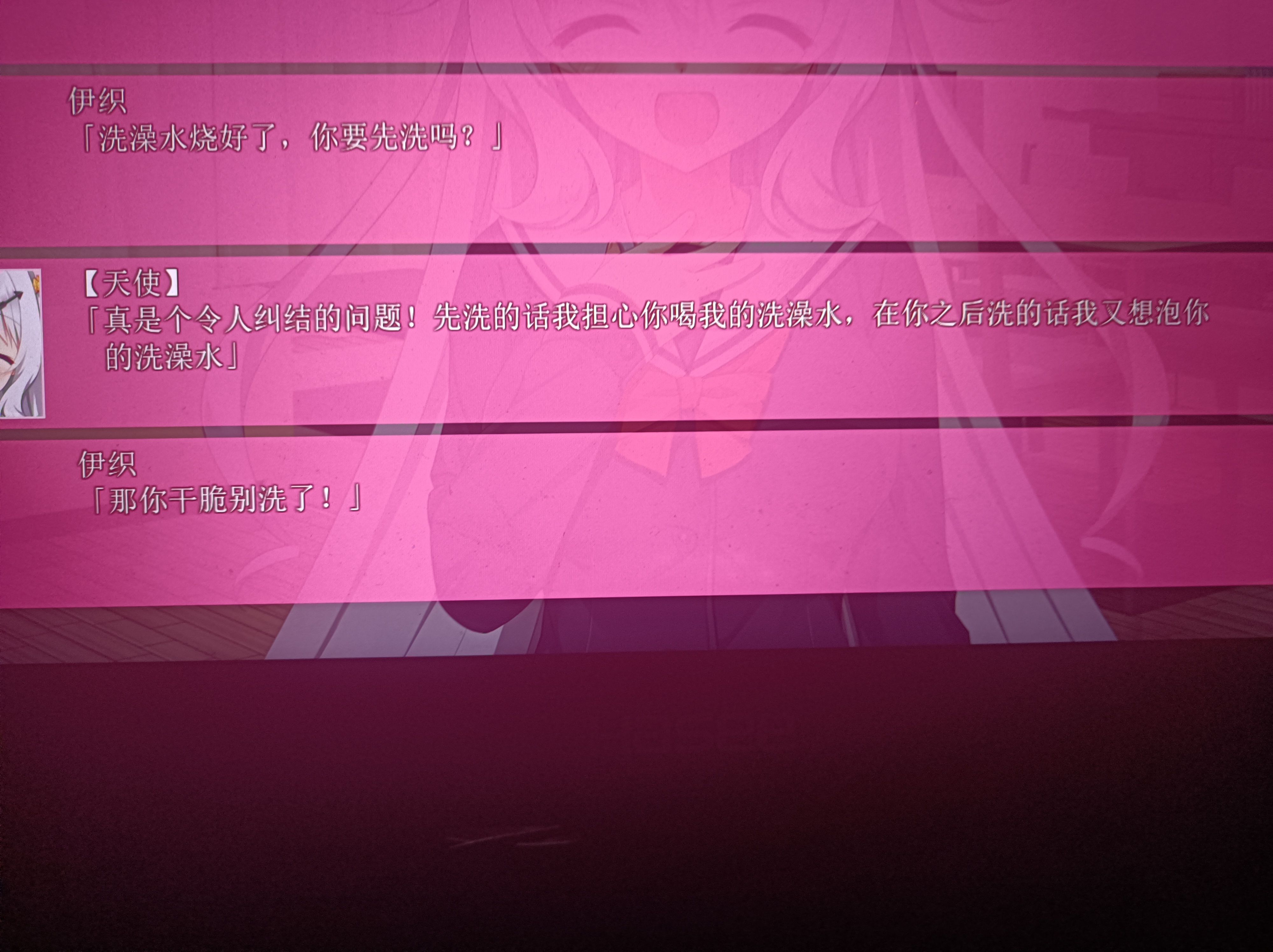 直译应该是 先洗怕你喝我洗澡水 但是在你之后洗也有点讨厌啊 原文确实我听到了いやだな