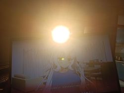 不知不觉天亮了 正对着窗户的客厅沙发 太阳刚好从天使酱的头上升起・゚( ノヮ´ )
