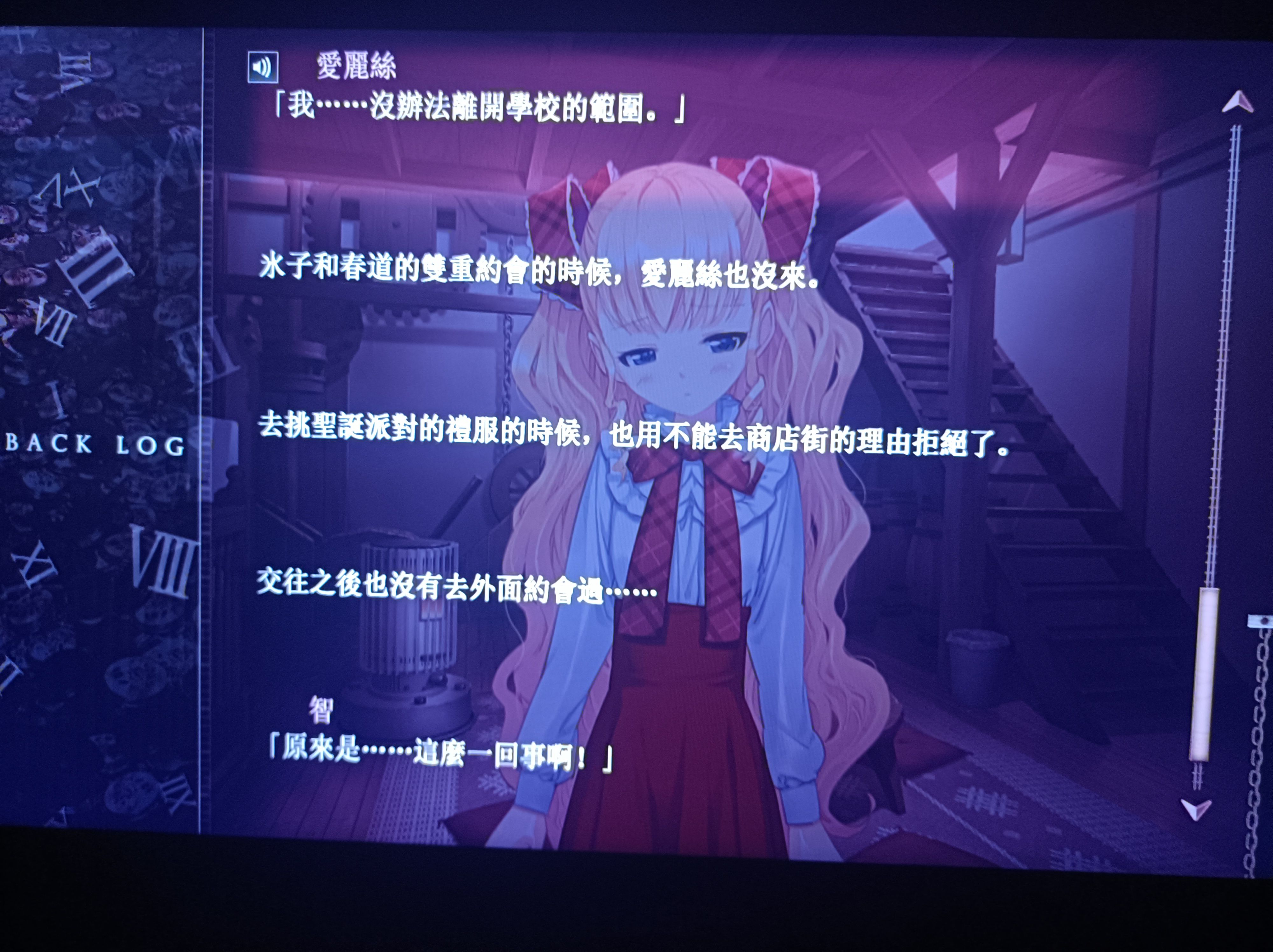 爱丽丝线通关了 这条线不好不坏吧 故事其实很简单 就是因为爱丽丝背起了收集怀表和纯白死神这个怀表 受到七个不可思议规则制约 同时为了让七穗回到回去而行动
