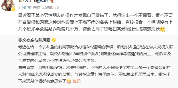 第一段大概懂了 她是想炫耀她还认识斗鱼员工,AUV好老的资历哟,毕竟武汉AC前代理站长。认识武汉分家的斗鱼员工可把你能的