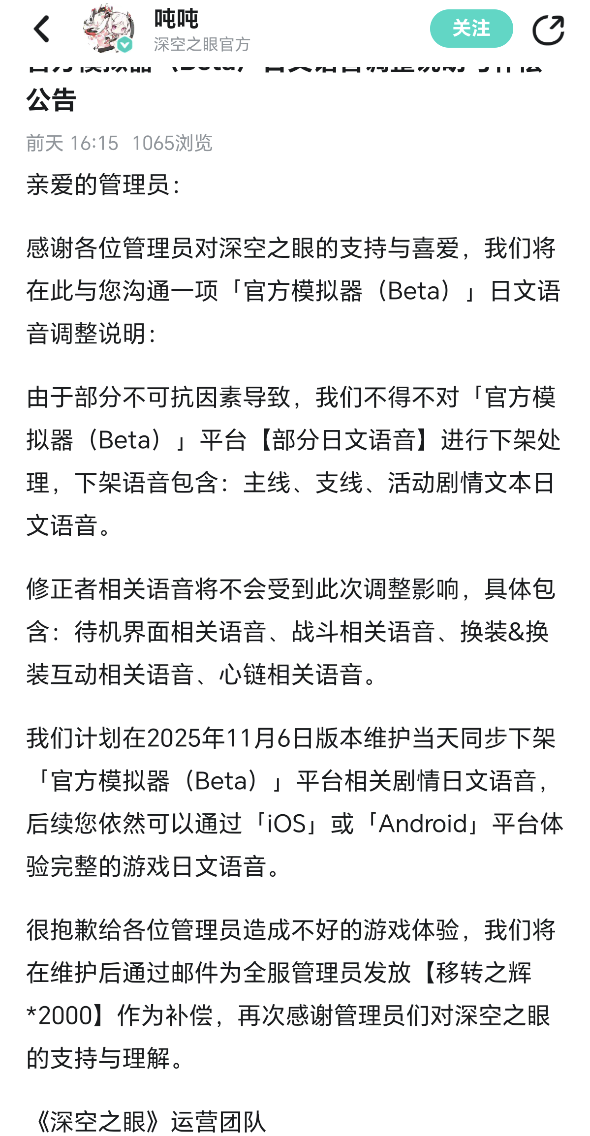 省流:因为产能不足(?),以后会减少主界面站立姿势的交互和语音,重点做带背景的交互和誓约场景的交互