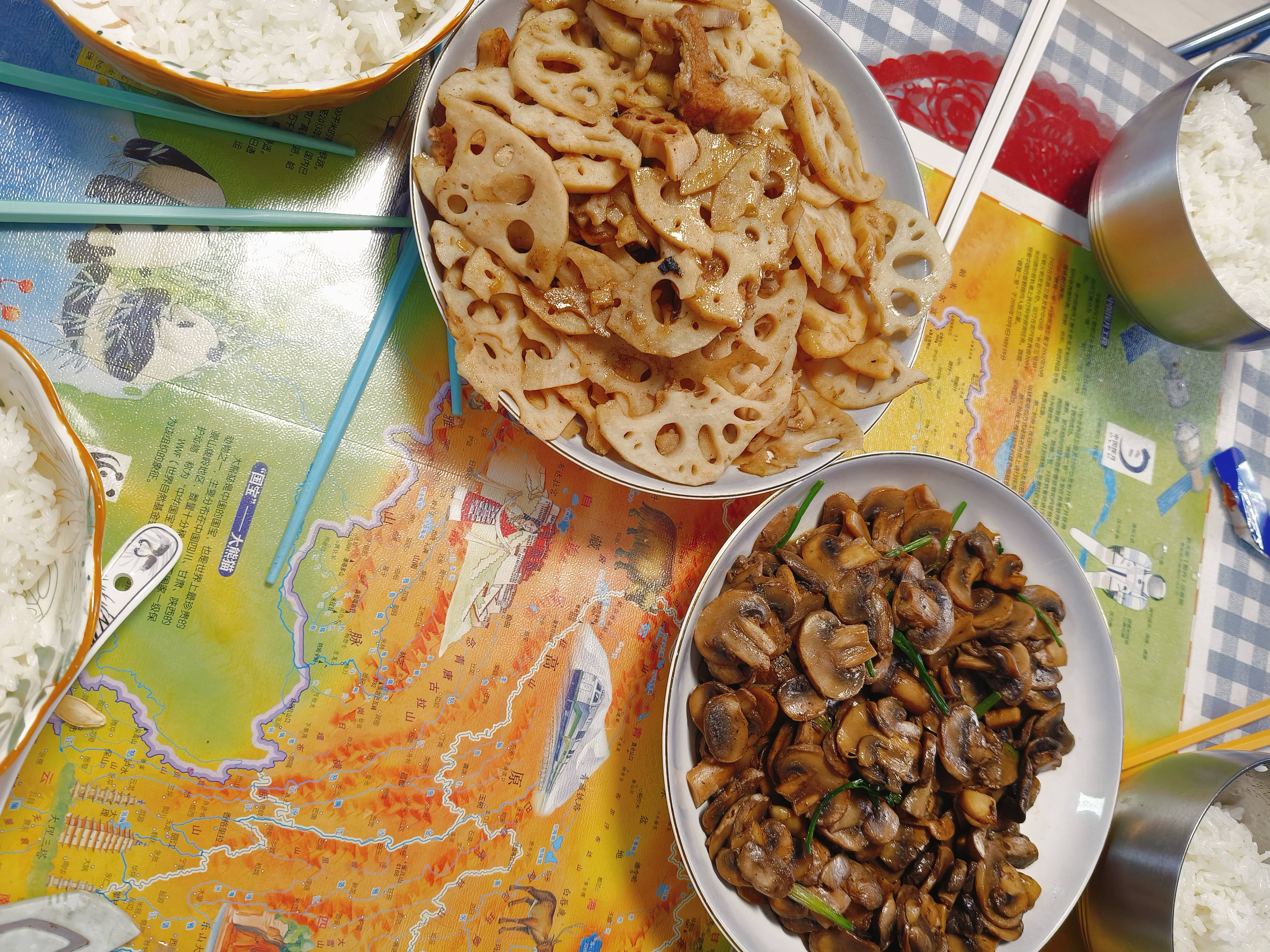 藕片炒肉,炒口蘑