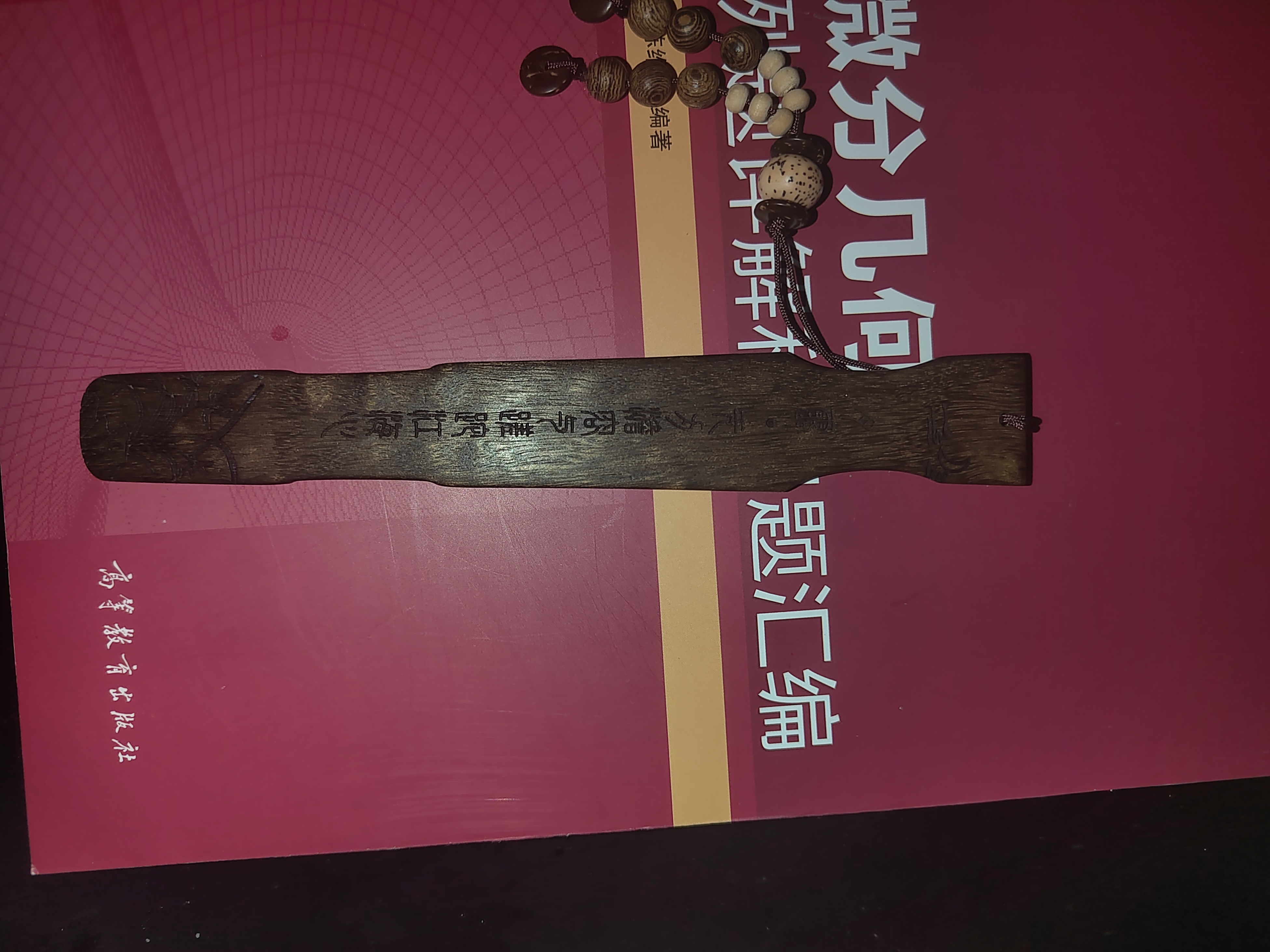 给娃娃摆件买的古琴形状书签,木头的纹理还挺漂亮,摔断过一次,我修好了,正好断在花纹那里,基本看不出来(つд⊂)