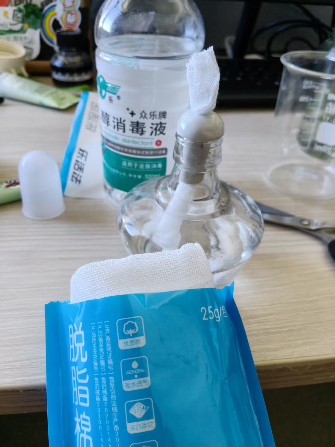 下午科学课带孩子们做实验,借的酒精灯没有灯芯,买了纱布准备下午手搓一个,能不能成功那是后话