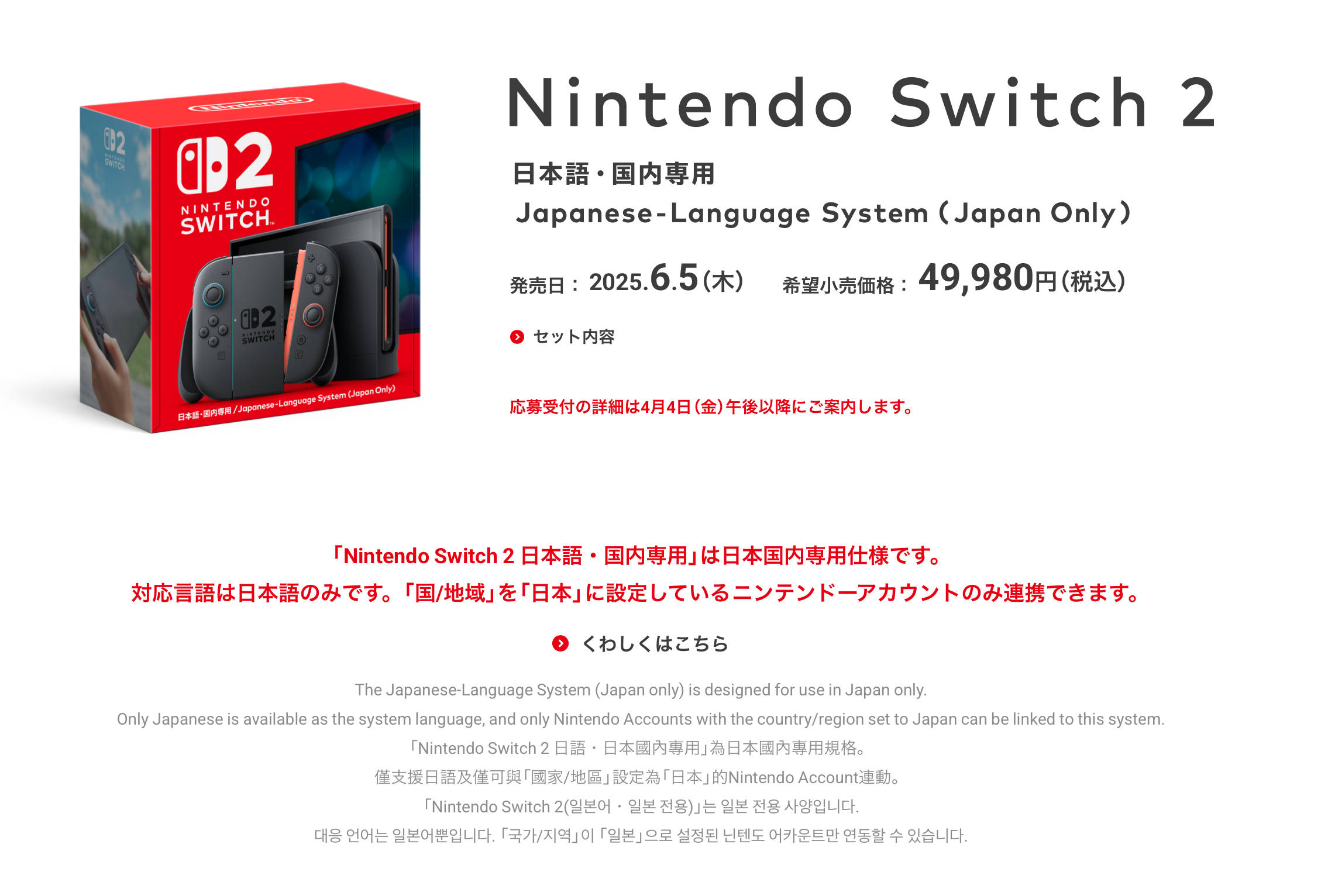 僅支援日語及僅可與「國家/地區」設定為「日本」的Nintendo Account連動。